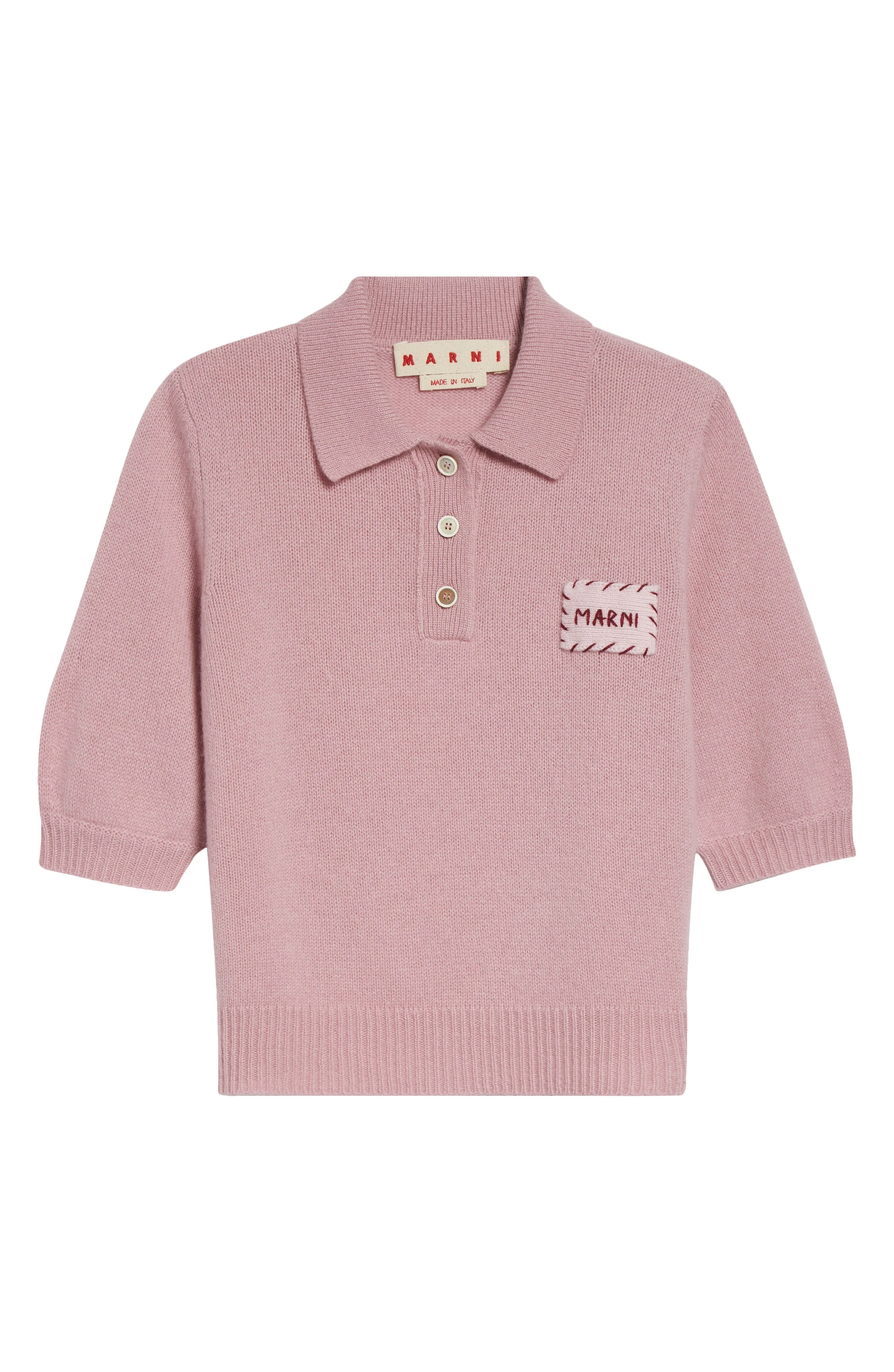 A hand-embroidered 'mending' logo evokes the eclectic, homespun character of Marni's recent seasons on this balloon-sleeve sweater knit from cloud-soft Italian cashmere. Button half placket Rib collar Short sleeves with ribbed cuffs 100% cashmere Dry clean Made in Italy Designer Clothing