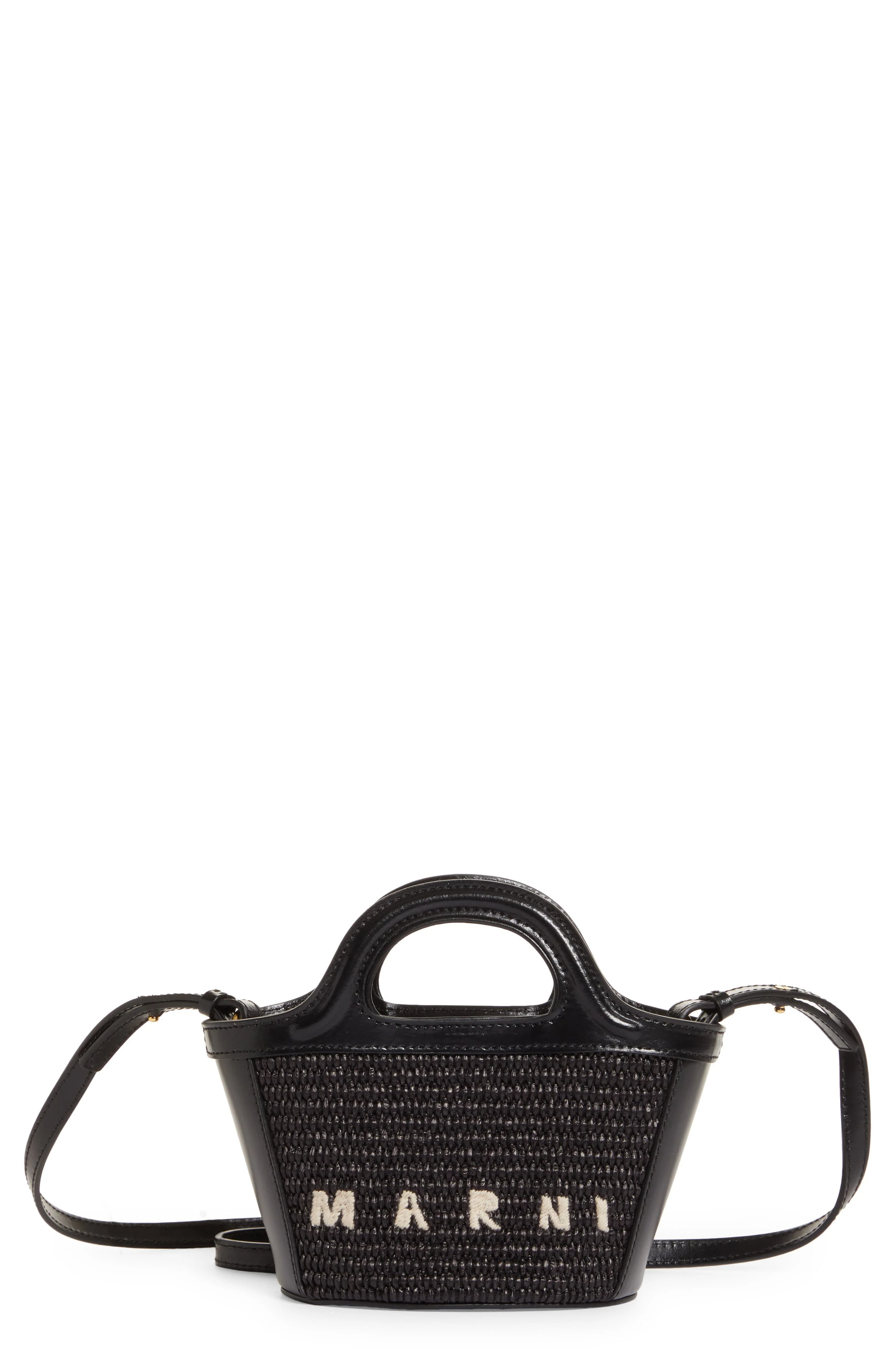 Marni Micro Tropicalia Logo Woven Top Handle Bag in Black at Nordstrom