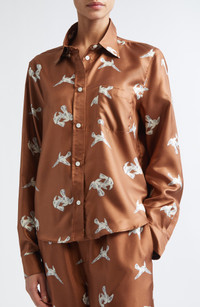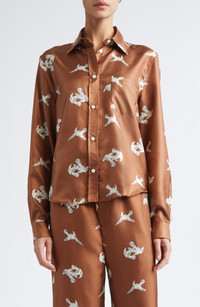 Marni Ravens Silk Twill Button-Up Shirt in Maroon at Nordstrom