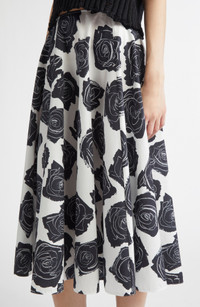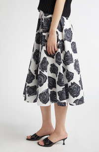 This flared midi skirt in cotton poplin features a runway-featured monochrome-rose print inspired by the idea of capturing fleeting beauty. Hidden side-zip closure 100% cotton Dry clean Made in Italy Designer Clothing