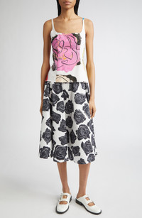 Marni Rose Print Cotton Midi Skirt in Lily White at Nordstrom