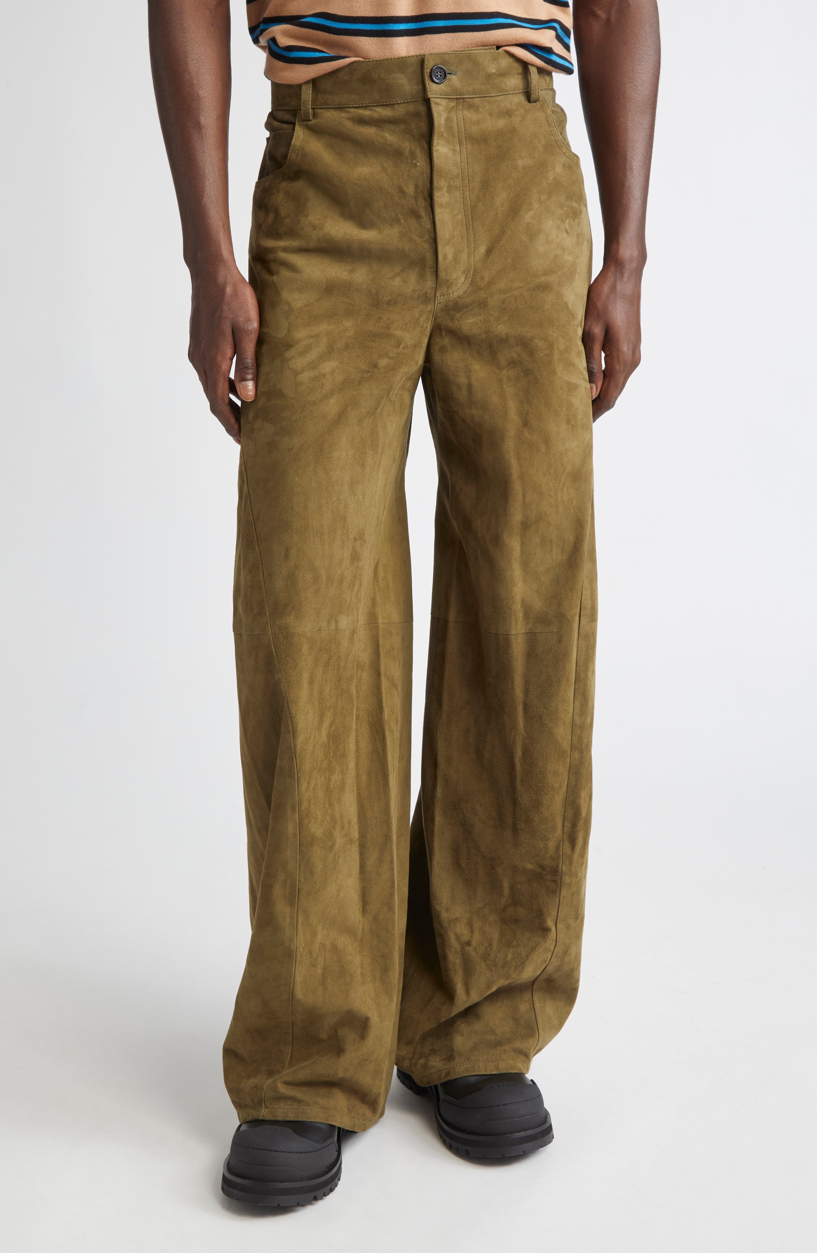 Marni Suede Wide Leg Pants in Sage at Nordstrom