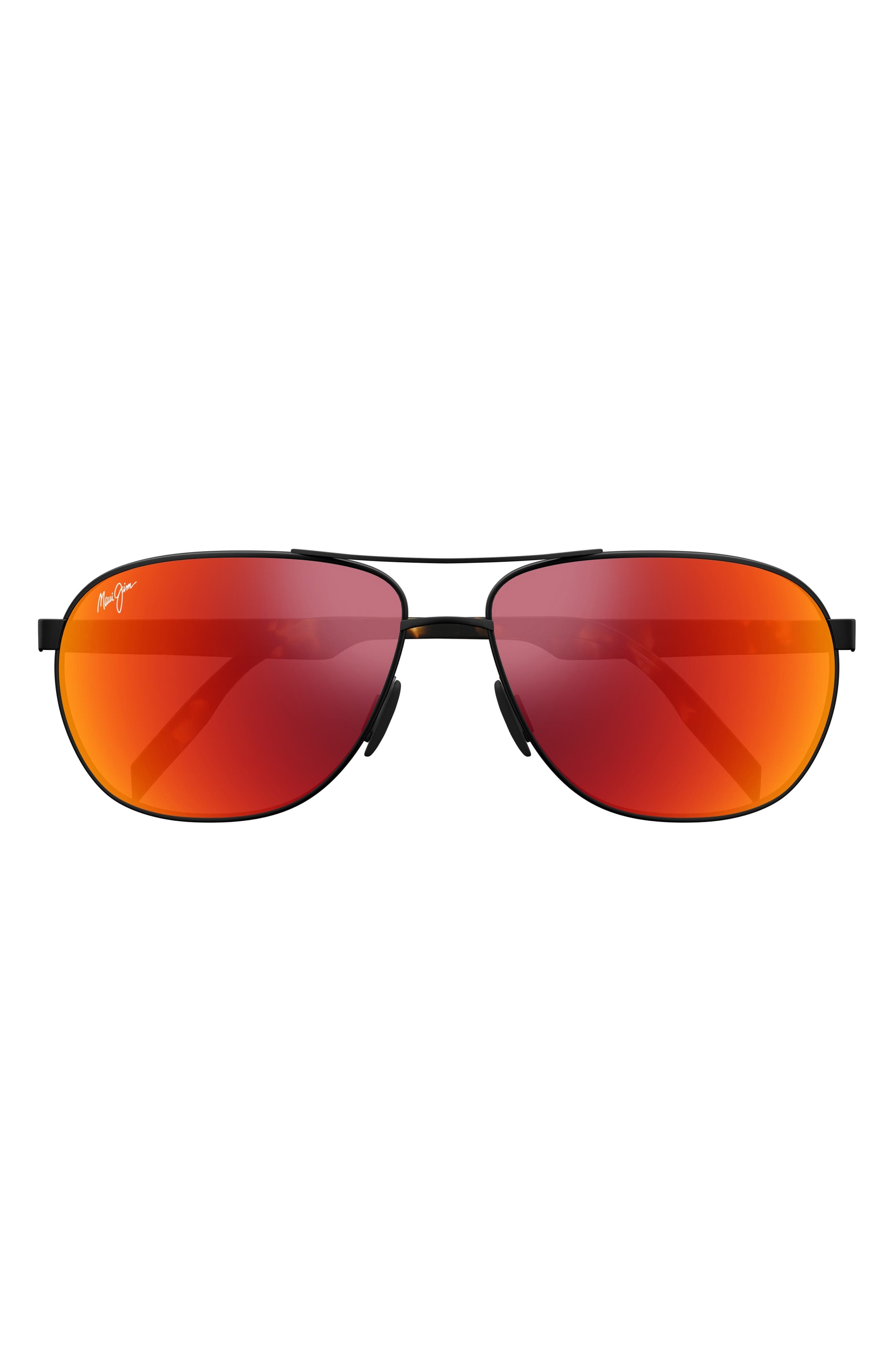 Maui Jim Castles 61mm PolarizedPlus2® Aviator Sunglasses in Black/Hawaii Lava at Nordstrom