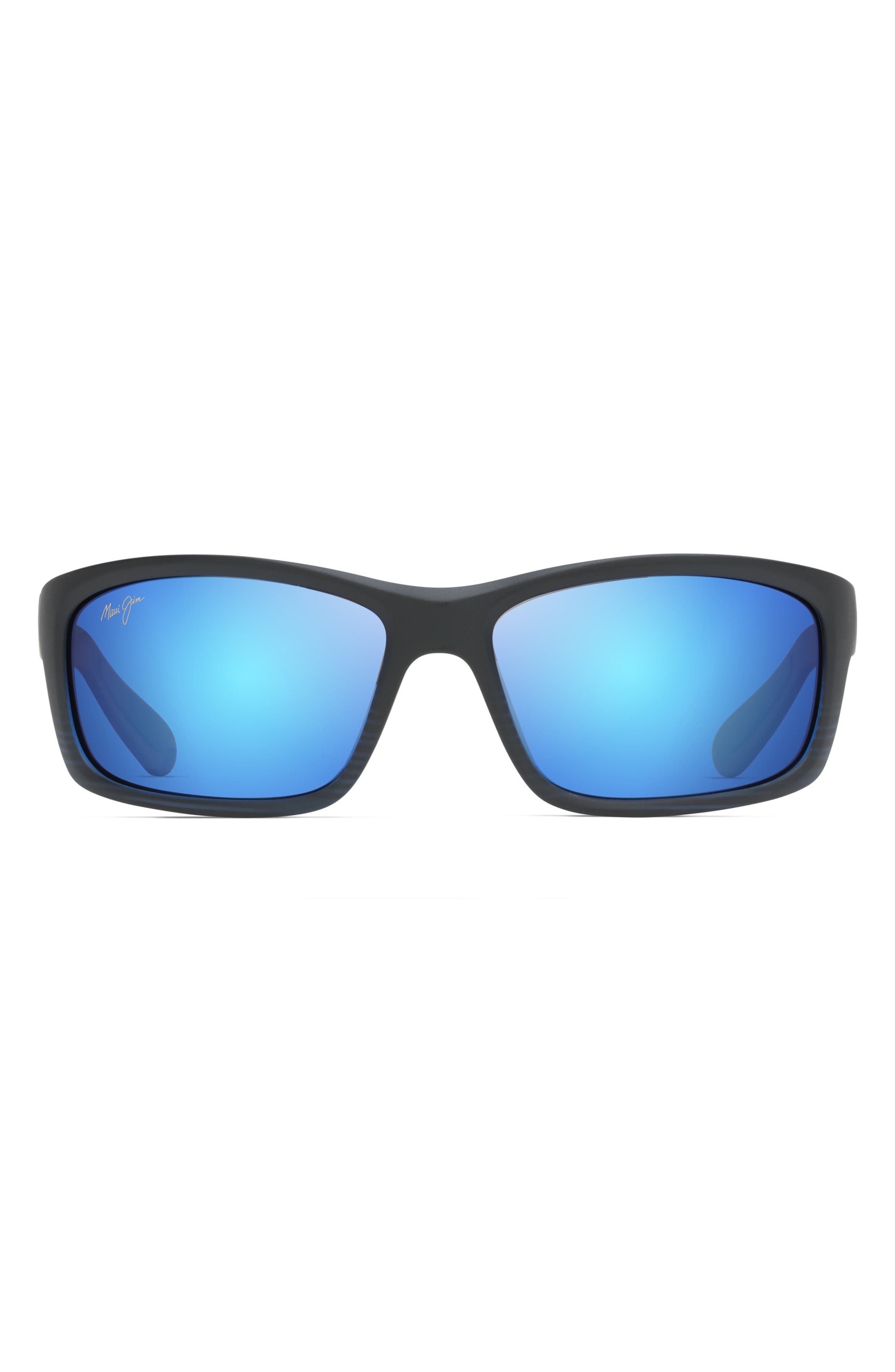 Maui Jim Kanaio Coast 61mm PolarizedPlus2® Rectangular Sunglasses in Matte/Blue/black Stripe at Nord