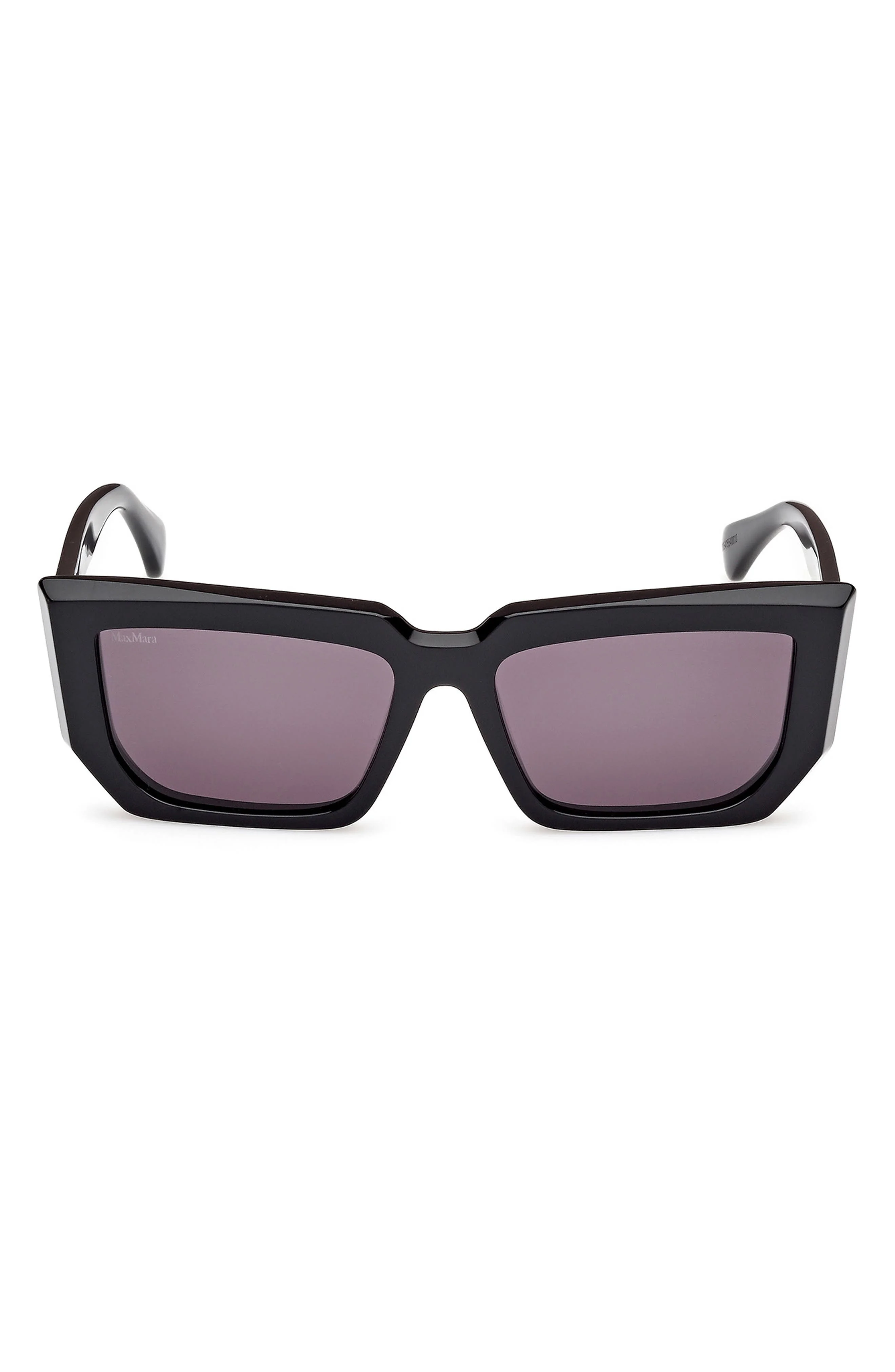 Max Mara 54mm Rectangular Sunglasses in Shiny Black /Smoke Lenses at Nordstrom