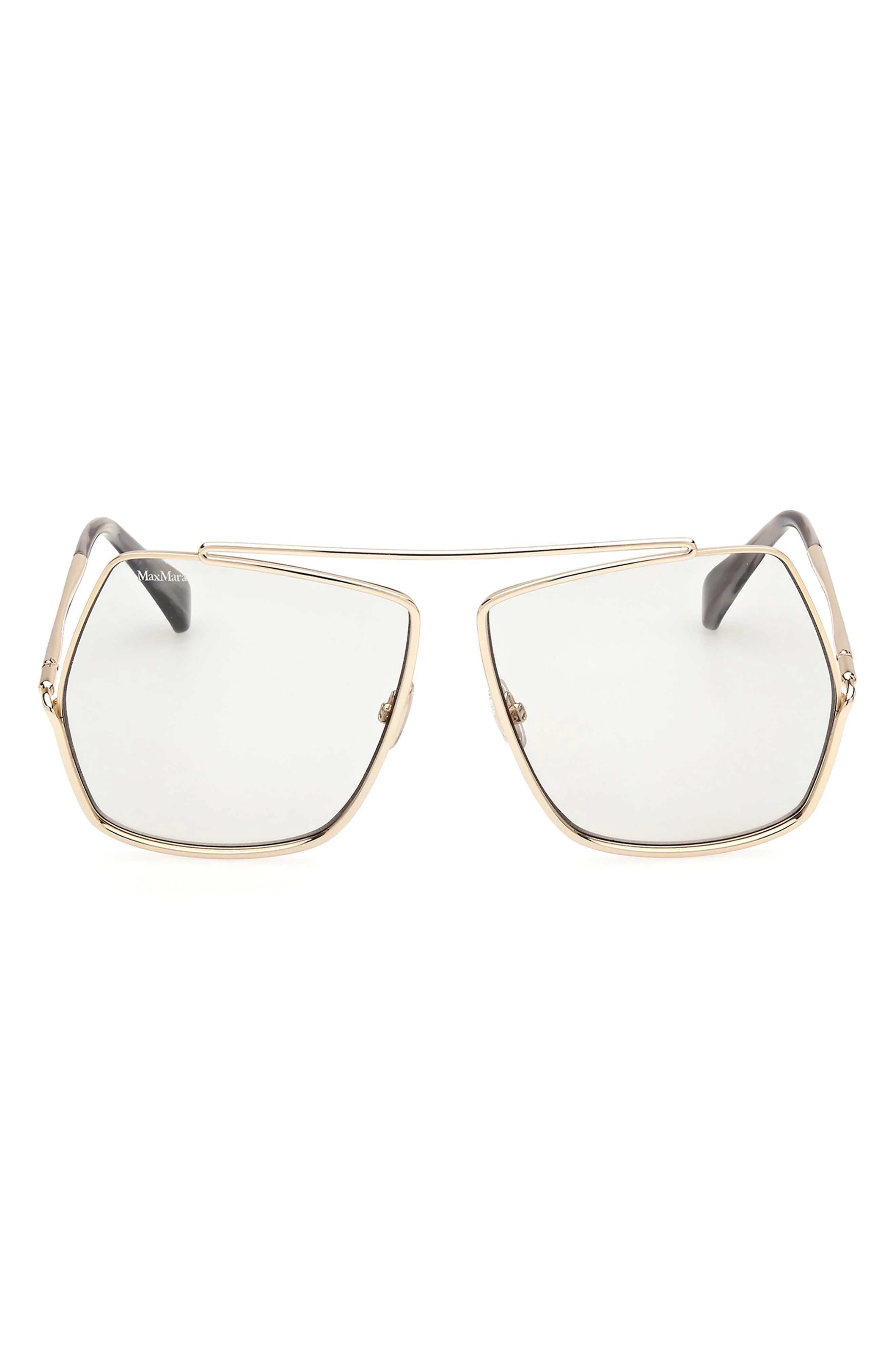 Max Mara 64mm Geometric Sunglasses in Gold /Smoke at Nordstrom