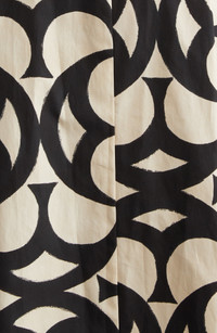 Removable crystal embellishments twinkle at the V-neck of this cotton-poplin shirtdress that showcases a graphic print covering the classic flare-skirt silhouette. A matching belt completes the polished look. Hidden-button placket V-neck Three-quarter sleeves with button cuffs Side-seam pockets Removable belt 100% cotton Dry clean Imported Designer Clothing