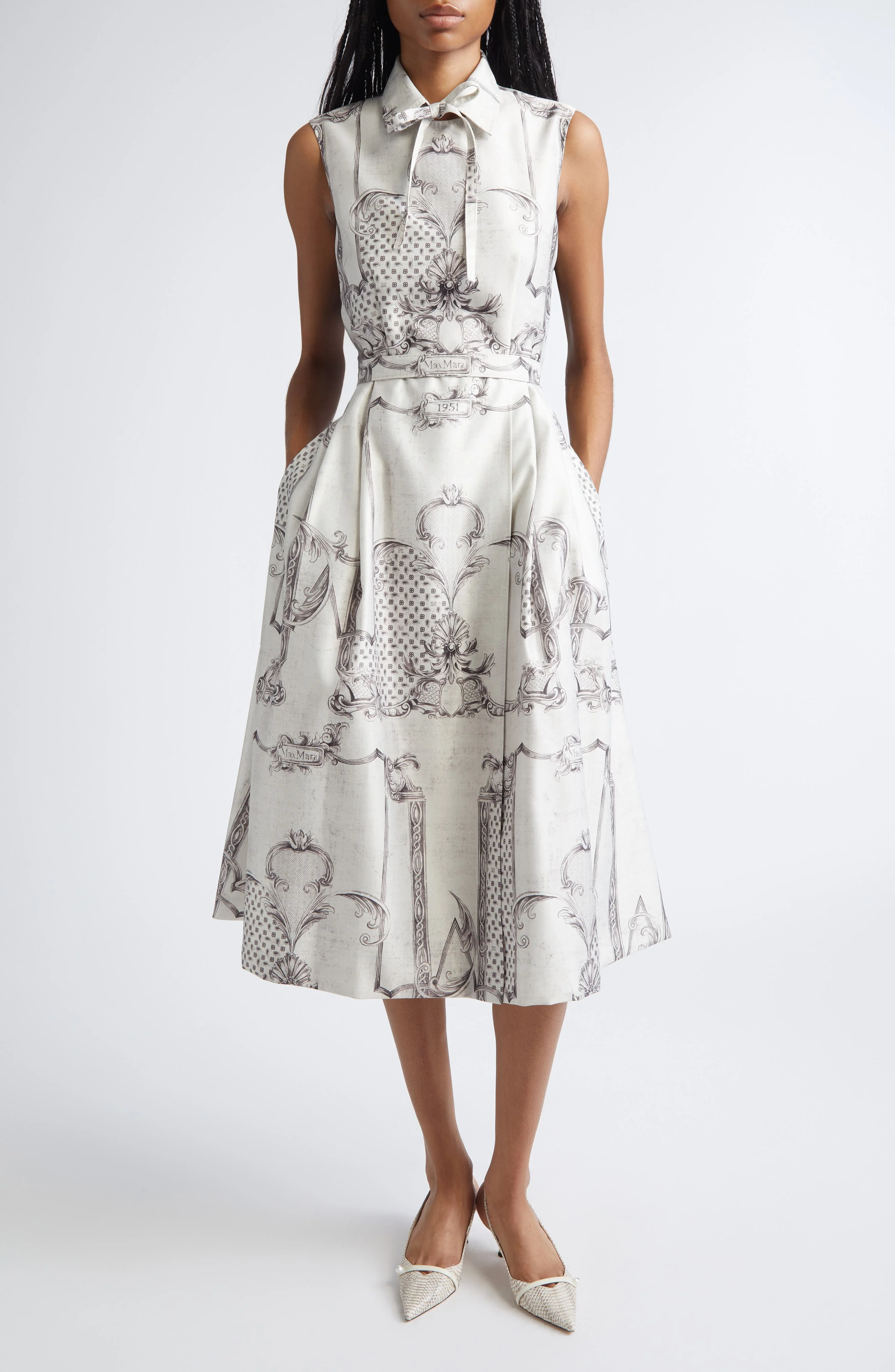 Max Mara Ambuto Print Sleeveless Fit & Flare Dress in Ivory at Nordstrom