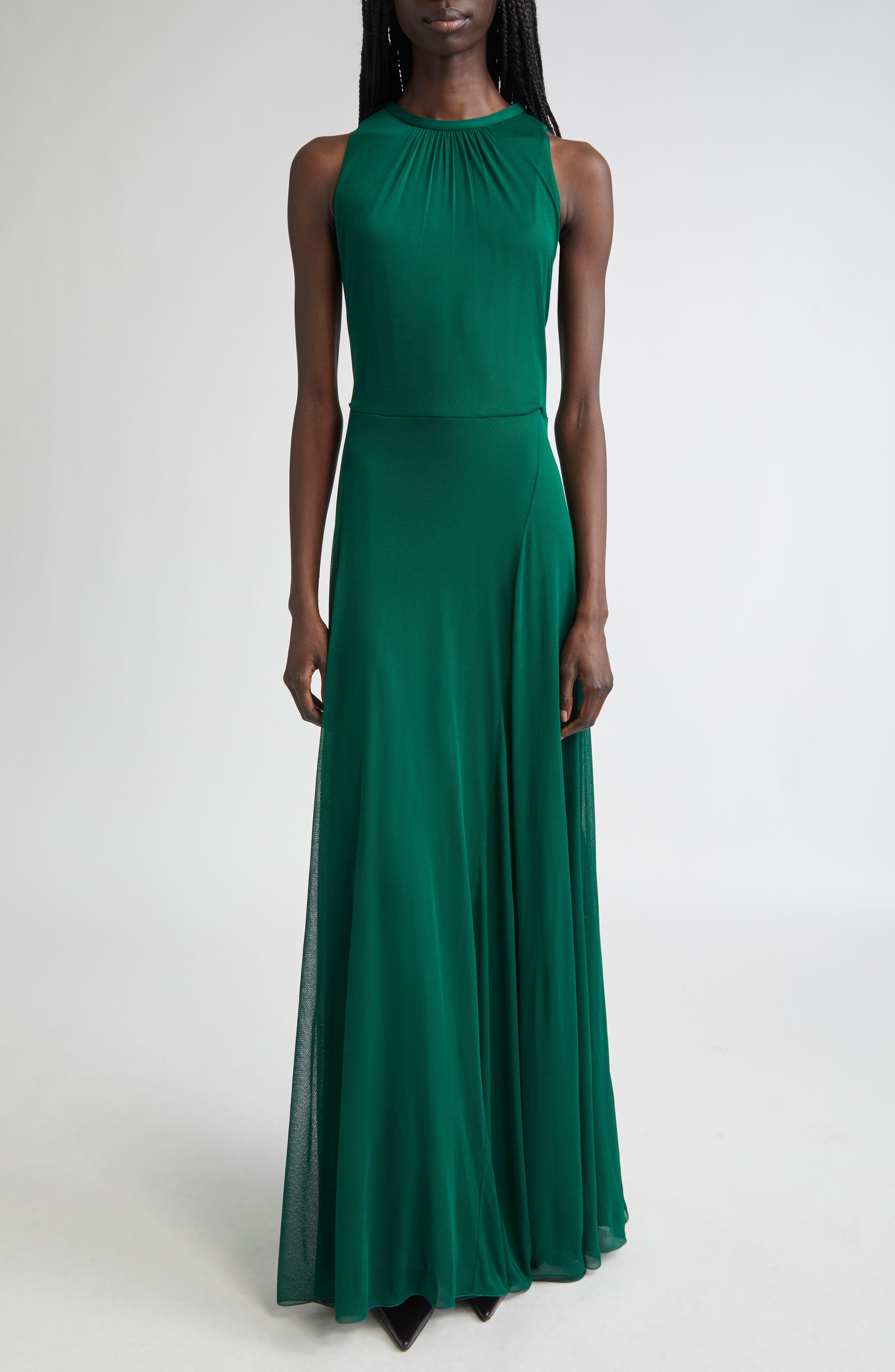 Max Mara Carnet Mesh Jersey Maxi Dress in Emerald at Nordstrom
