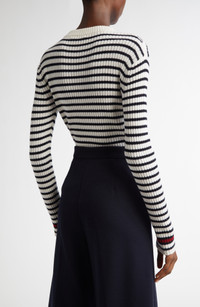 Max Mara Lari Button Detail Stripe Virgin Wool Rib Sweater in White at Nordstrom