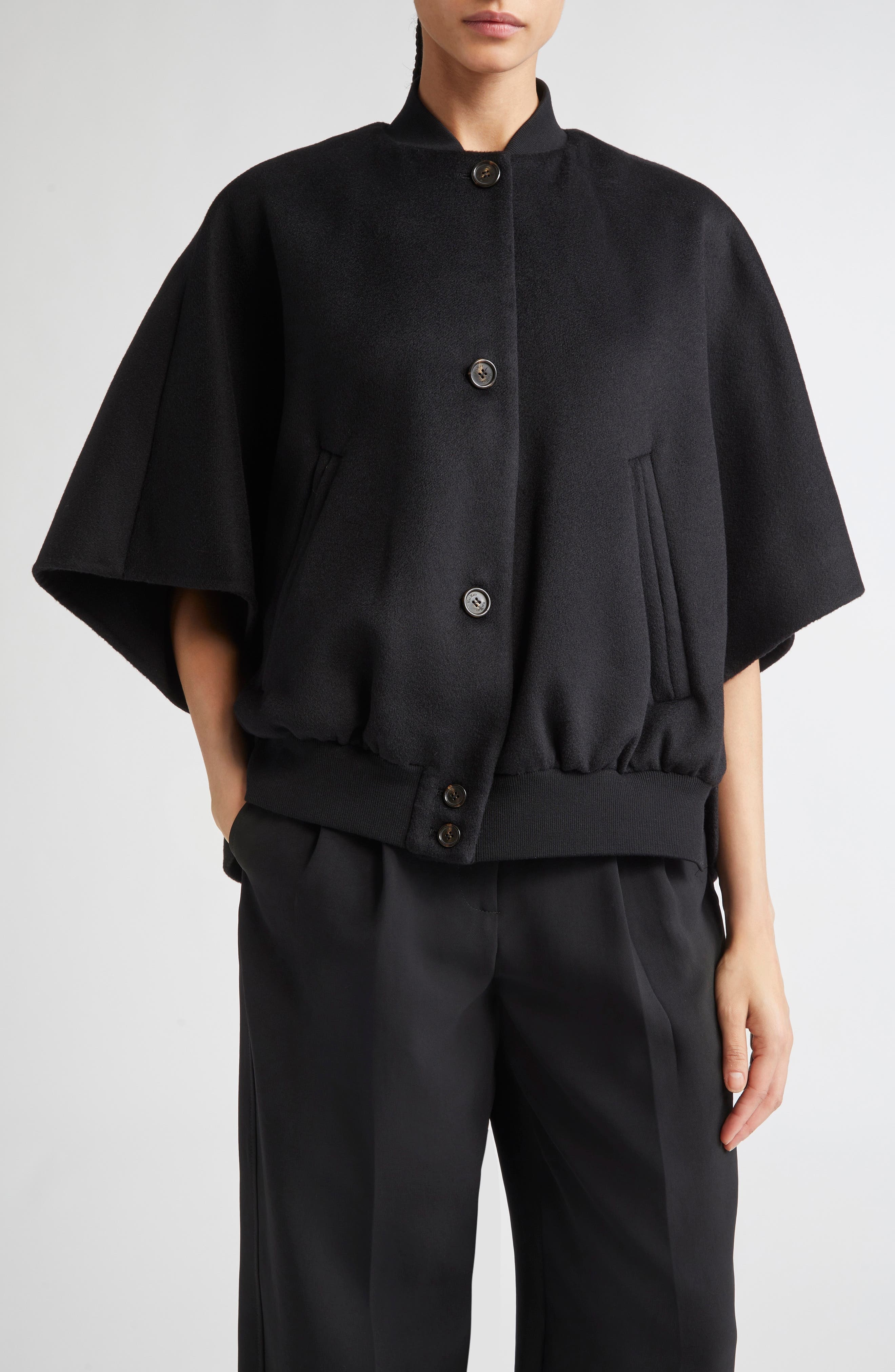 Max Mara Leticia Double Face Cashmere Cape in Nero at Nordstrom