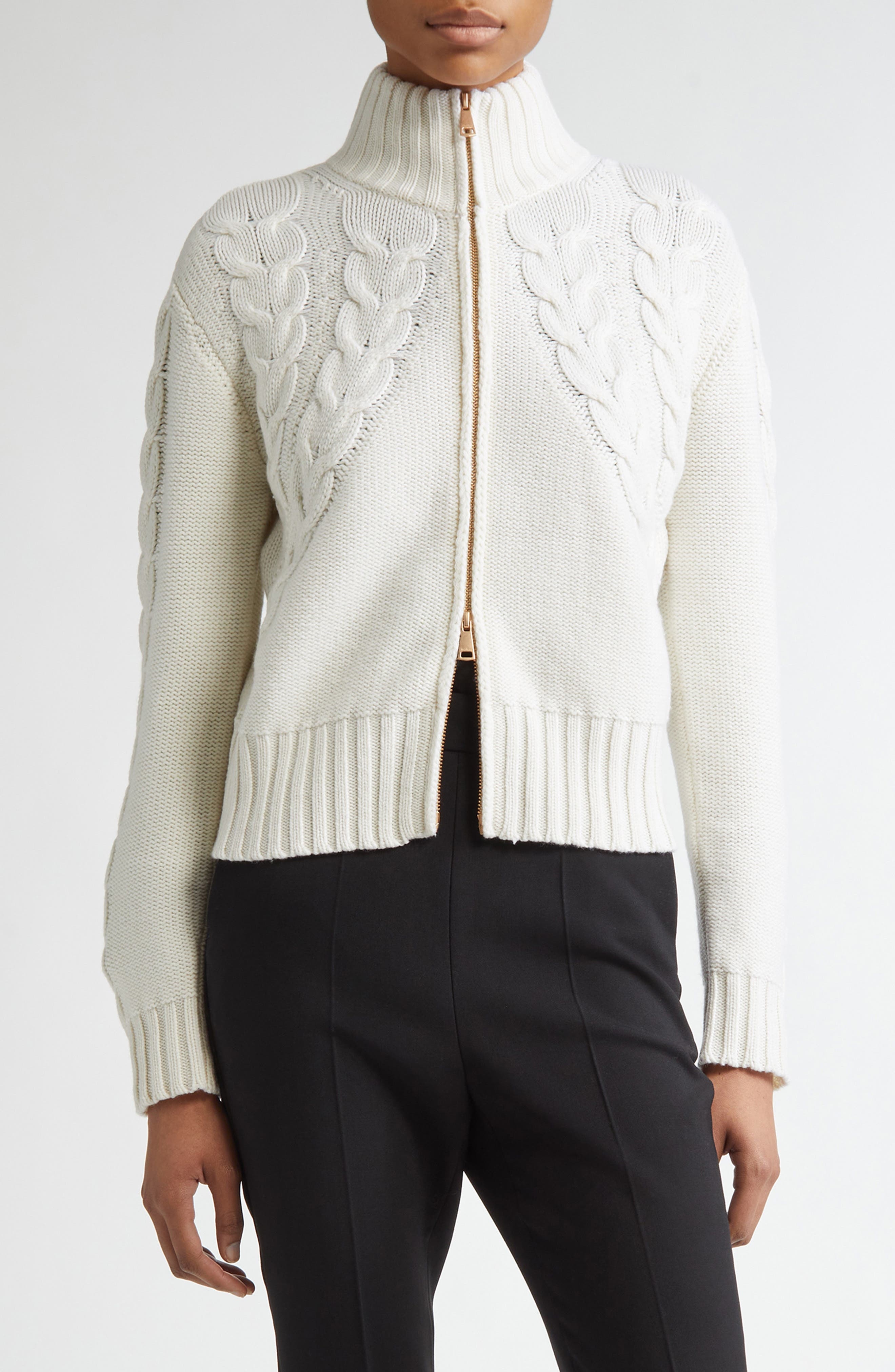 Max Mara Mabel Two-Way Zip Funnel Neck Wool & Cashmere Cardigan in White at Nordstrom