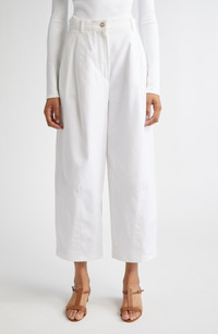 Max Mara Mina Wide Leg Crop Stretch Denim Trousers in White at Nordstrom