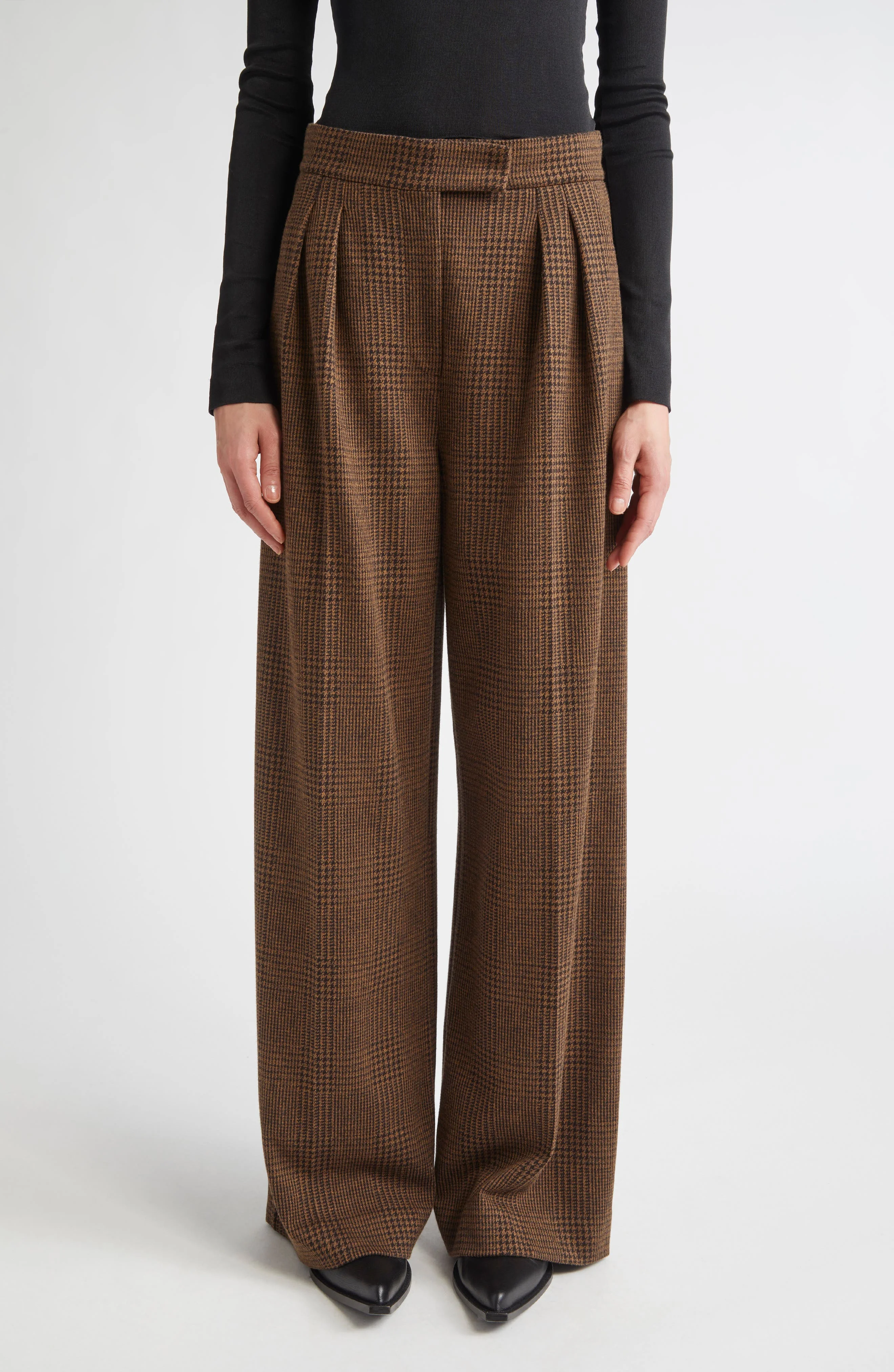 Max Mara Ponza Pleated Houndstooth Check Wide Leg Pants in Chocolate at Nordstrom