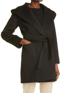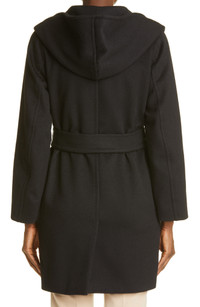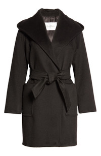 Made in Italy from sumptuously soft camel hair, this belted wrap coat has a wide shawl collar that drapes into a generous, cozy hood. Tonal pickstitching is a subtle Max Mara signature. Open front Shawl collar with fixed hood Front patch pockets Removable tie belt Back vent Lined 100% camel hair Dry clean Made in Italy Women's Designer Clothing