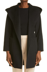 Max Mara Rialto Hooded Camel Hair Coat in Black at Nordstrom