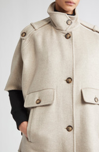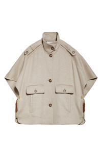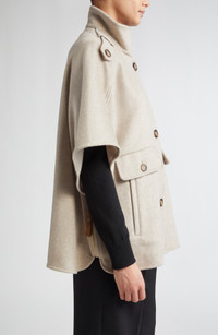 Double-face construction ensures a lighter weight and the plush comfort of cashmere inside and out wearing this military-styled cape. Front button closure Stand collar Elbow-length sleeves Front dual-entry pockets Epaulets Zip-closure side slits 100% cashmere Dry clean Made in Italy Designer Clothing