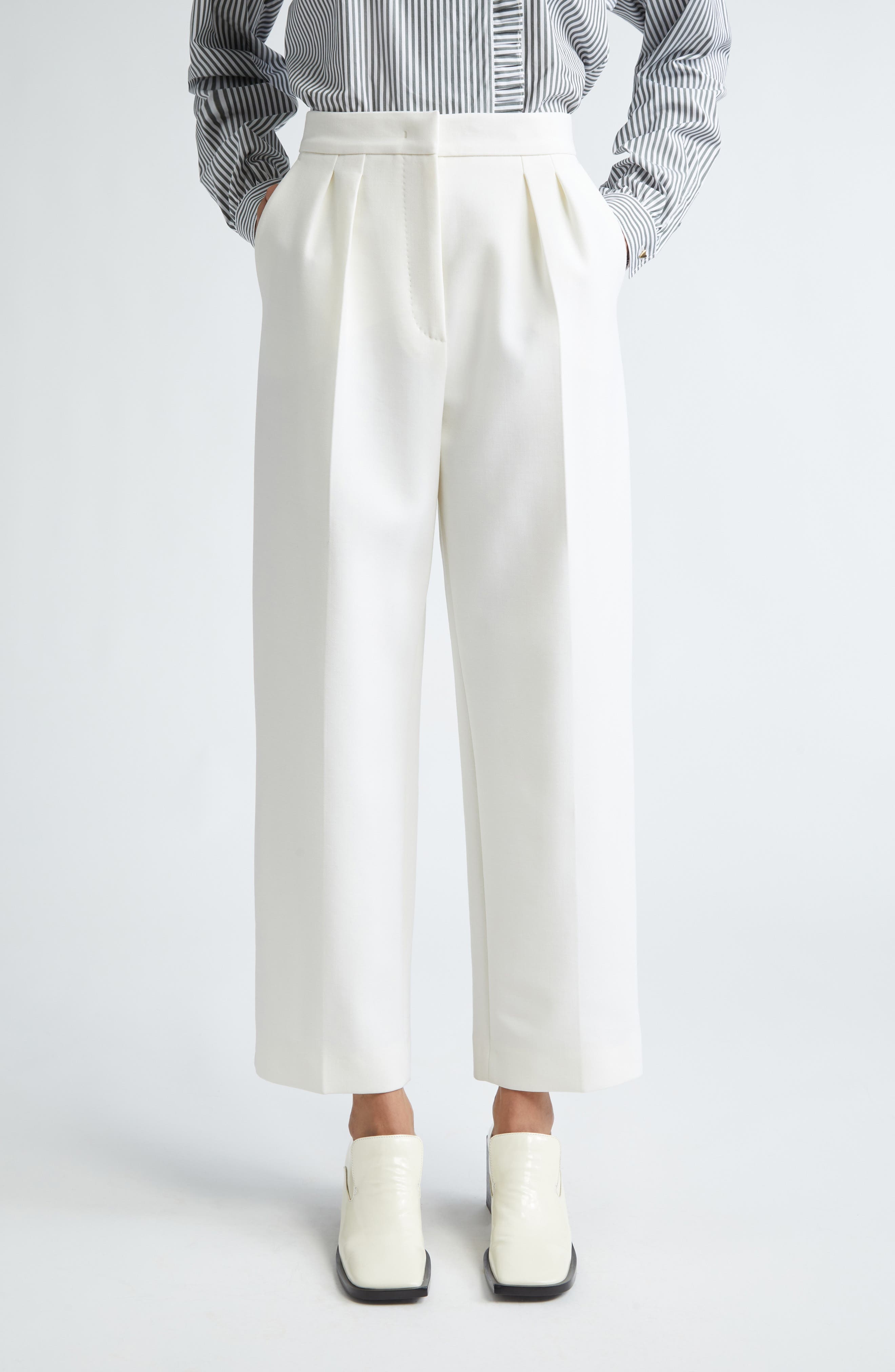 Max Mara Verbano Pleated Ankle Straight Leg Pants in White at Nordstrom