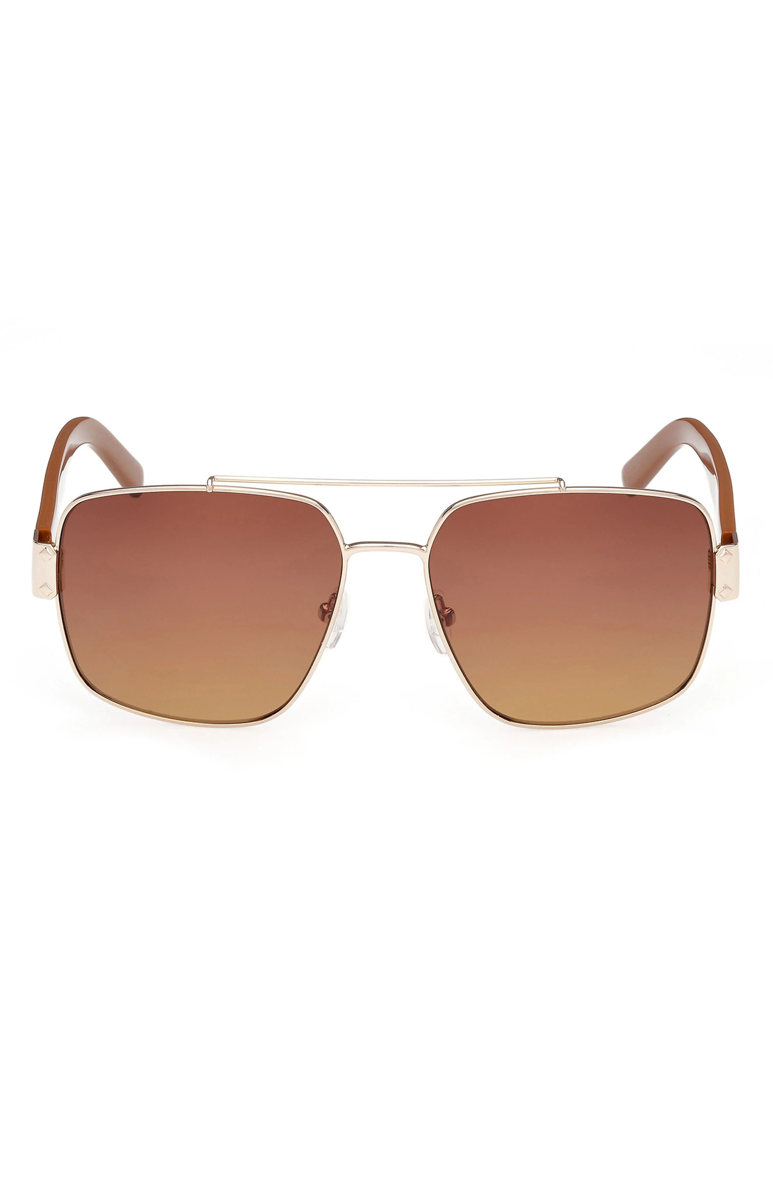A sleek browbar accentuates the modern look of Italian-crafted navigator sunglasses finished with adjustable nose pads and logo-branded temples. 58mm lens width; 16mm bridge width; 145mm temple length 100% UV protection Adjustable nonslip nose pads Metal Imported