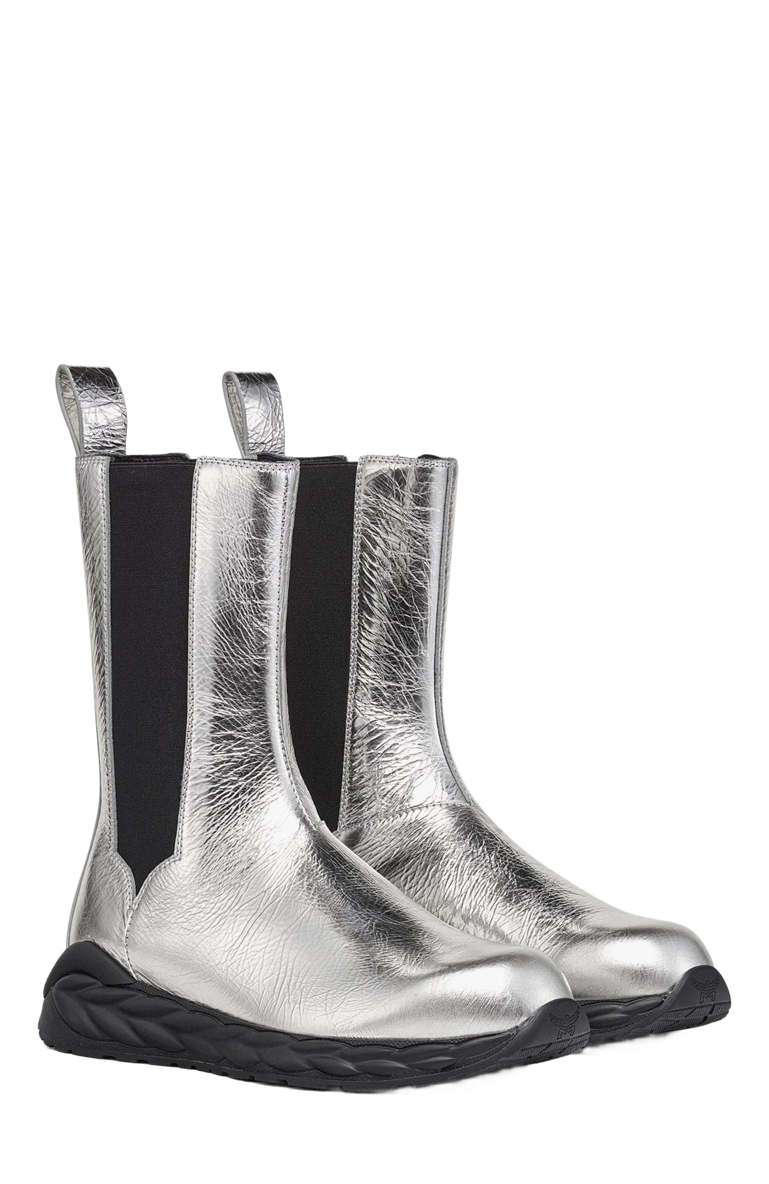 MCM Skywander Boots in Metallic Calf Leather in Silver at Nordstrom