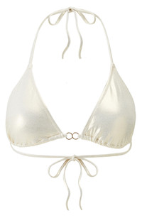 Shine your brightest as you lounge by the water wearing this shimmery triangle bikini top made with fully adjustable ties. Ties at neck and back Adjustable tie straps 86% polyamide, 14% elastane Hand wash, dry flat Made in Italy