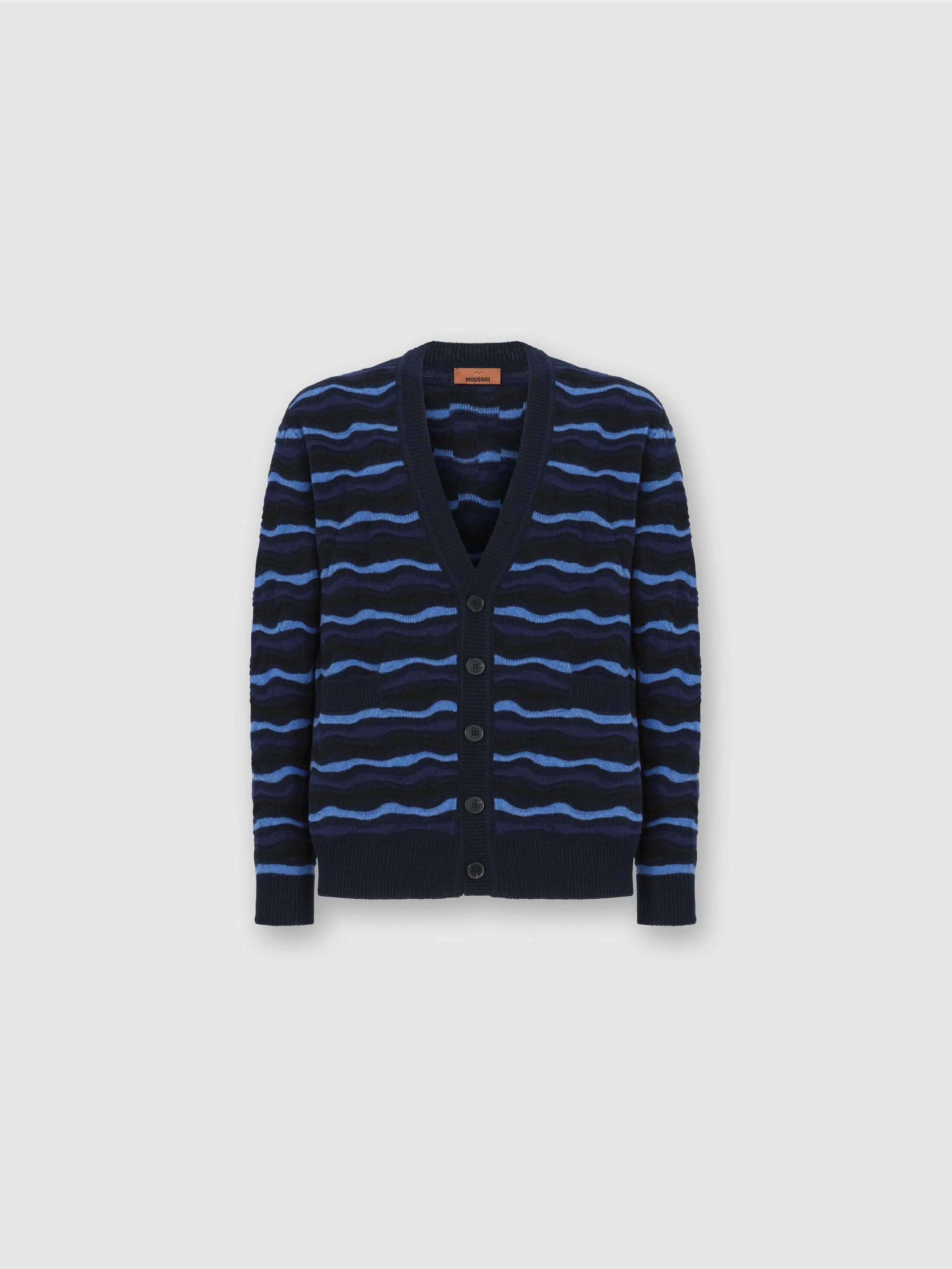 Missoni Cardigan In Pure Wool With Wave Stitch in Blue at Nordstrom