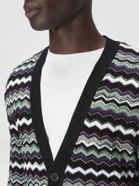 Missoni gets back to the essence, where matter and colour merge. Clothes are the words, but the speeches and stories are of those who wear them. The accent is on outerwear and tailoring: enveloping coats, trench coats, fluid suits, buttonless blazers, loose trousers. Extremes that meet, long tight dresses and liquid ones like caftans, graphic miniskirts and vaporous shirts. A transversal vision, where the sensuality of the body is felt, revealed or barely perceived. Cardigan with buttons Zigzag stripes with contrast trims Wool and cotton blend Ironing maximum temperature 110°C - without steam Hand wash Dry cleaning in tetrachloroethene Do not tumble dry Dry flat Do not bleach