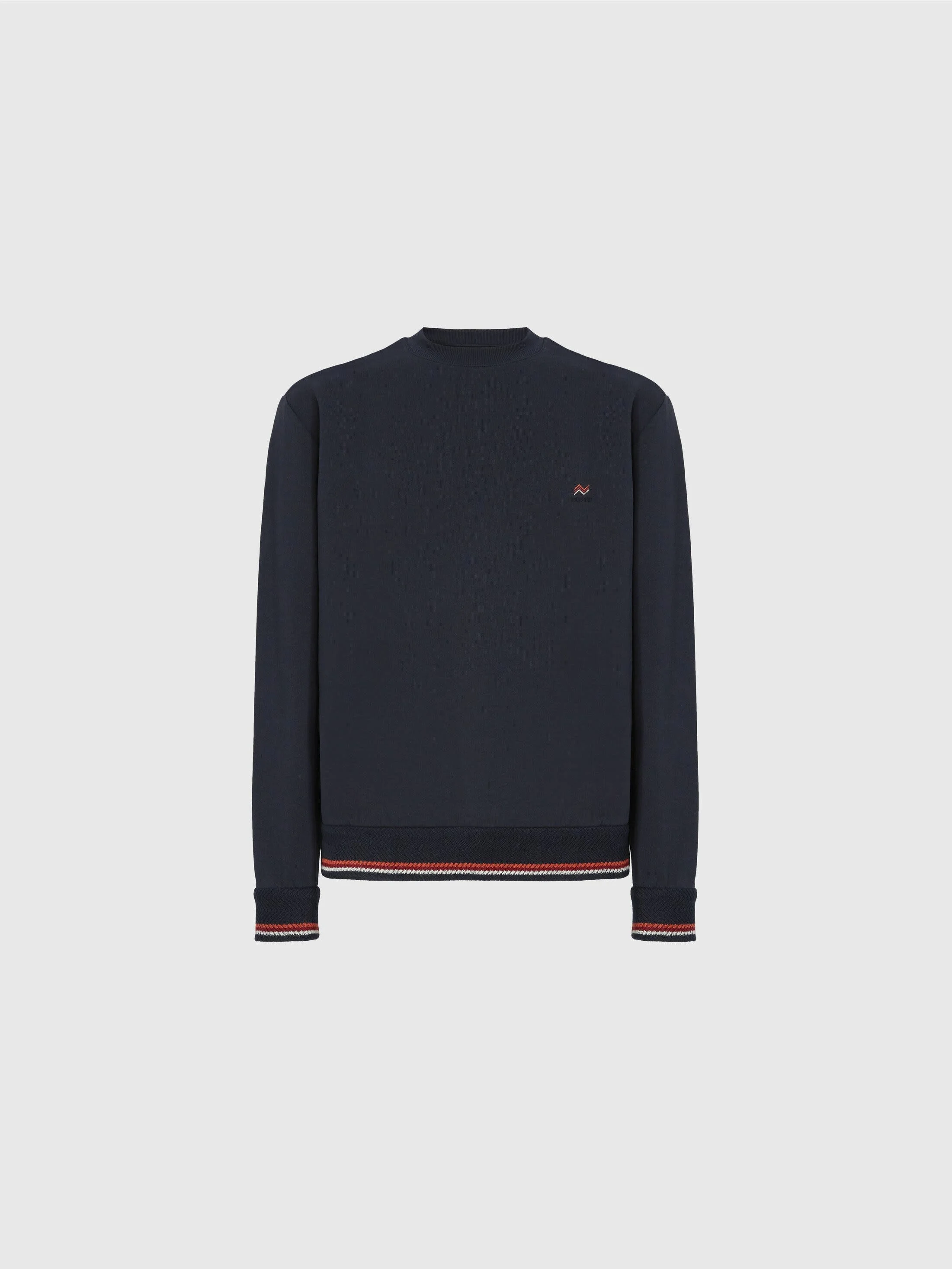 Missoni gets back to the essence, where matter and colour merge. Clothes are the words, but the speeches and stories are of those who wear them. The accent is on outerwear and tailoring: enveloping coats, trench coats, fluid suits, buttonless blazers, loose trousers. Extremes that meet, long tight dresses and liquid ones like caftans, graphic miniskirts and vaporous shirts. A transversal vision, where the sensuality of the body is felt, revealed or barely perceived. Crew-neck sweatshirt Ribbed collar and cuffs Embroidered logo 100% cotton Ironing maximum temperature 110°C - without steam Wash max 30°C - Mild process Do not tumble dry Do not dry clean Do not bleach