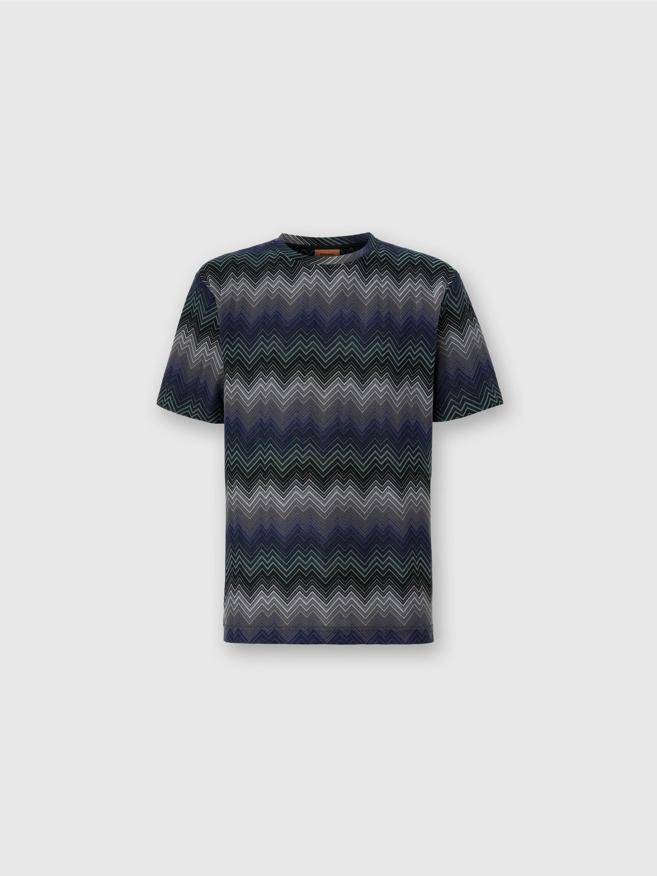 Missoni gets back to the essence, where matter and colour merge. Clothes are the words, but the speeches and stories are of those who wear them. The accent is on outerwear and tailoring: enveloping coats, trench coats, fluid suits, buttonless blazers, loose trousers. Extremes that meet, long tight dresses and liquid ones like caftans, graphic miniskirts and vaporous shirts. A transversal vision, where the sensuality of the body is felt, revealed or barely perceived. T-shirt short sleeve Raschel knit Irregular zigzag mix pattern Cotton blend Ironing maximum temperature 110°C - without steam Hand wash Dry cleaning in tetrachloroethene - mild process COOL HAND WASH Do not tumble dry Do not bleach