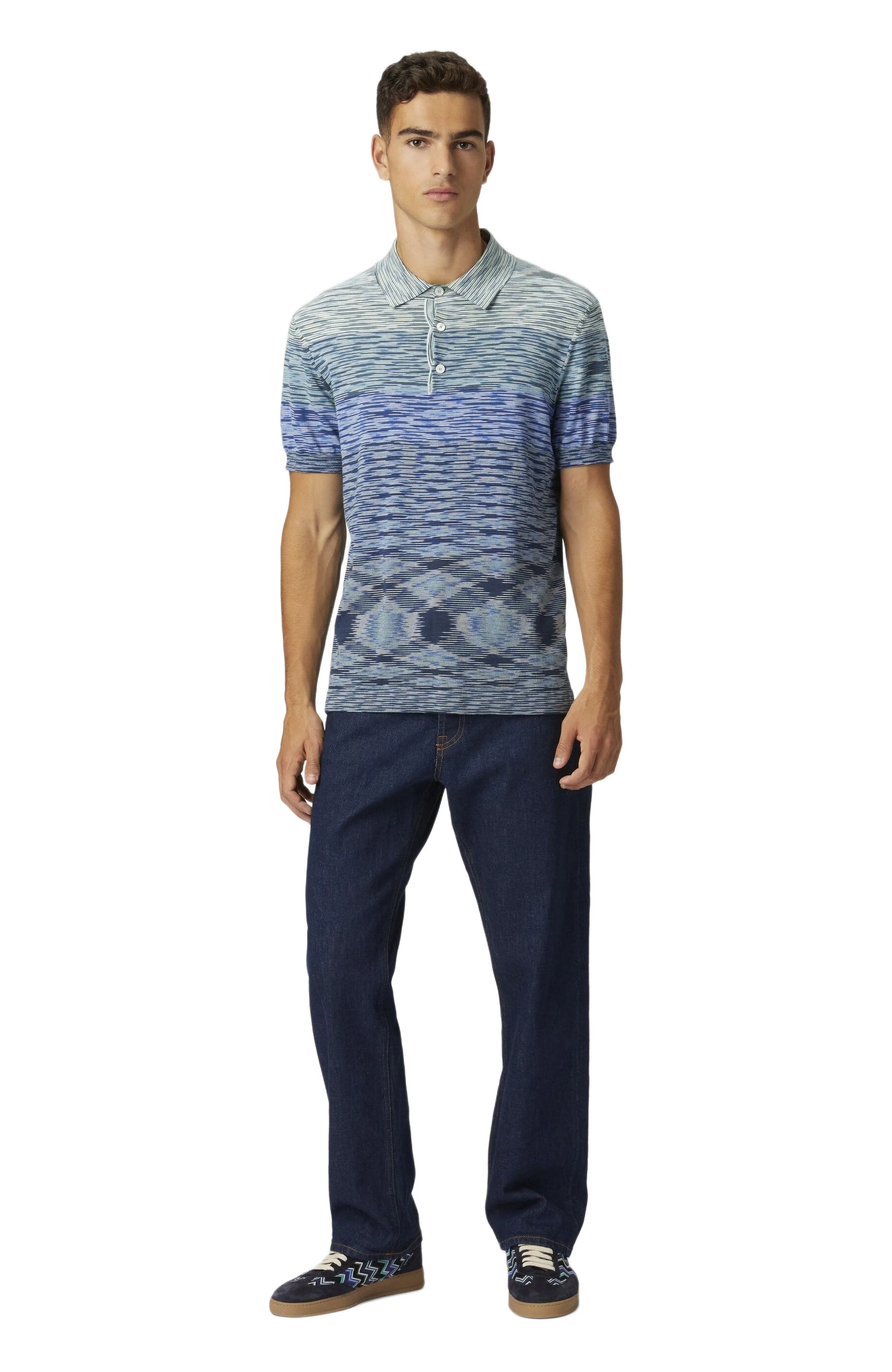 Contemporary sleekness and liberated sensuality imbue the Missoni Fall 2024 collection. Offsetting the masculine and the feminine, swinging between the slouchy and the skintight, the collection features pieces that build an ongoing Missoni wardrobe: long and short dresses, skimpy maxi-cardigans and blouson cardigans meant as outerwear; playful faux fur coats and pencil coats with faux fur oversized collars and trims; fluid pantsuits; jumpsuits and tops. Short-sleeved polo shirt Cotton and viscose knitting Iconic zig zag pattern Ironing maximum temperature 110°C - without steam Hand wash Dry cleaning in tetrachloroethene - mild process Dry flat Do not tumble dry Do not bleach