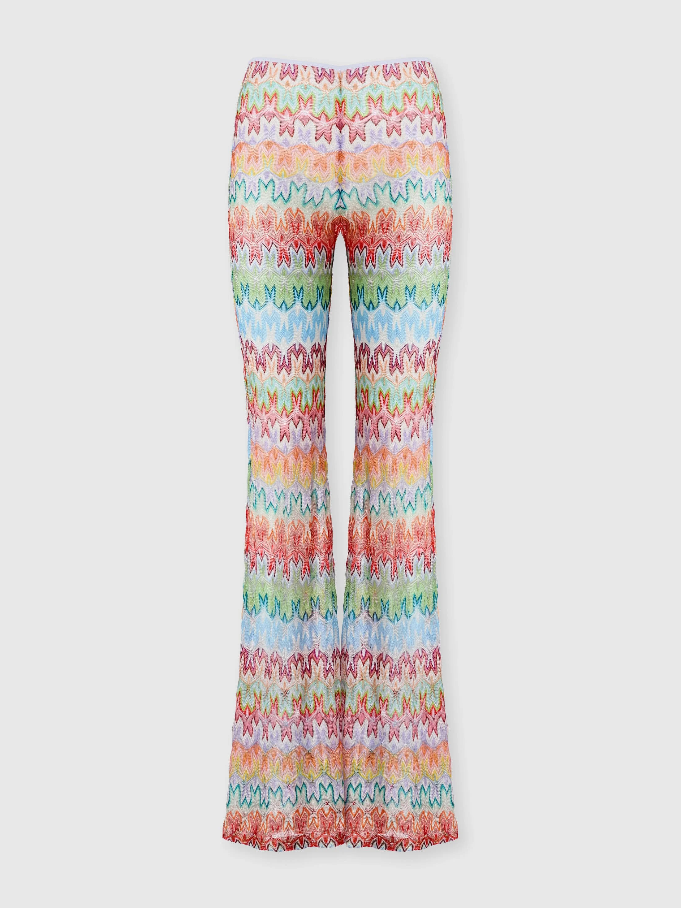 Missoni presents the Spring-Summer 2026 collection: a celebration of femininity, lightness, and colour. A collection that tells the story of beauty through contrasts: flowing lines, exquisite craftsmanship, and the brand’s unmistakable identity. Iconic zigzags, lurex weaves and textures capture the light, combining elegance and freedom. Women's flare beach cover-up pants Raschel lace knit Floral pattern 100% viscose Ironing maximum temperature 110°C - without steam Dry cleaning in tetrachloroethene Do not tumble dry Iron with a cloth between Do not wash Do not bleach