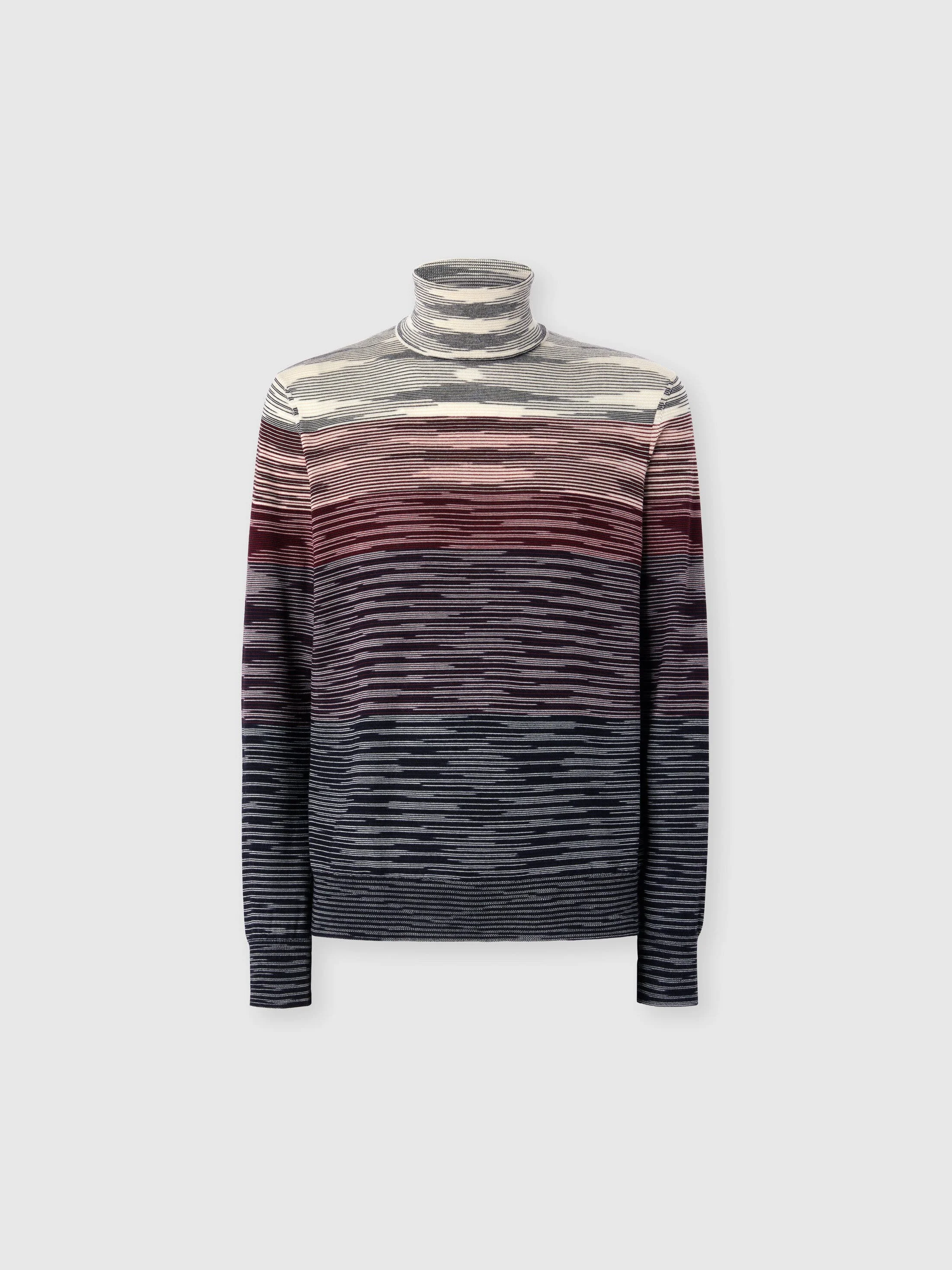Missoni gets back to the essence, where matter and colour merge. Clothes are the words, but the speeches and stories are of those who wear them. The accent is on outerwear and tailoring: enveloping coats, trench coats, fluid suits, buttonless blazers, loose trousers. Extremes that meet, long tight dresses and liquid ones like caftans, graphic miniskirts and vaporous shirts. A transversal vision, where the sensuality of the body is felt, revealed or barely perceived. Turtleneck sweater All-over slub knit 100% wool Hand wash Dry cleaning in tetrachloroethene - mild process Ironing maximum temperature 110°C - without steam Do not tumble dry Dry flat Do not bleach