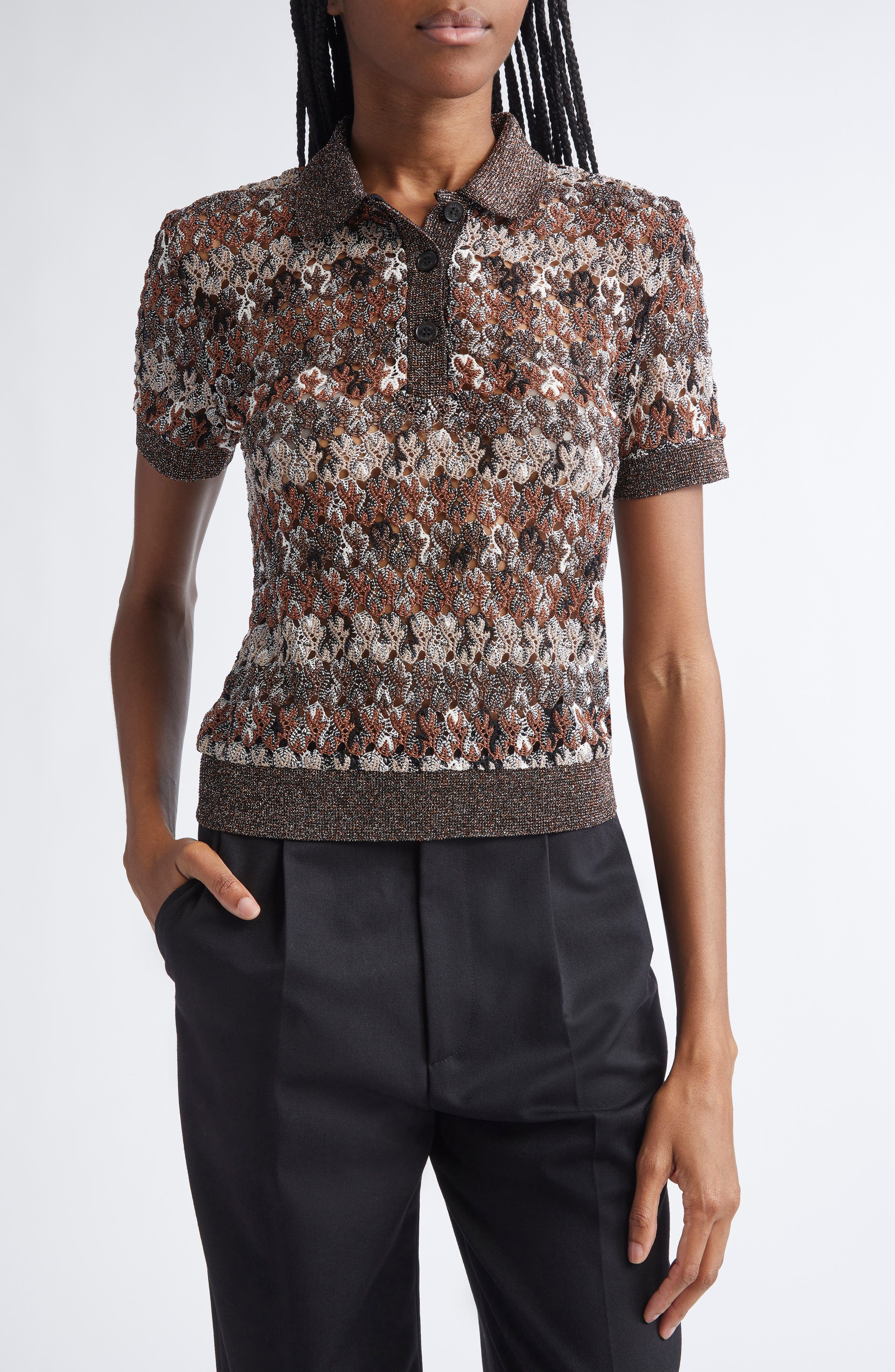 Missoni Knit Metallic Lace Polo in Light Brown Tones And Orange at Nordstrom