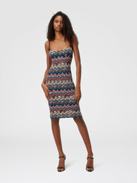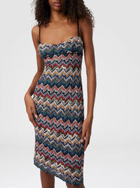 Missoni gets back to the essence, where matter and colour merge. Clothes are the words, but the speeches and stories are of those who wear them. The accent is on outerwear and tailoring: enveloping coats, trench coats, fluid suits, buttonless blazers, loose trousers. Extremes that meet, long tight dresses and liquid ones like caftans, graphic miniskirts and vaporous shirts. A transversal vision, where the sensuality of the body is felt, revealed or barely perceived. Midi slip dress Raschel knit Floral lace Viscose and wool blend Ironing maximum temperature 110°C - without steam Dry cleaning in tetrachloroethene - mild process Dry flat Do not tumble dry Do not wash Do not bleach