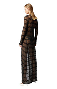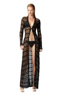 Contemporary sleekness and liberated sensuality imbue the Missoni Fall 2024 collection. Offsetting the masculine and the feminine, swinging between the slouchy and the skintight, the collection features pieces that build an ongoing Missoni wardrobe: long and short dresses, skimpy maxi-cardigans and blouson cardigans meant as outerwear; playful faux fur coats and pencil coats with faux fur oversized collars and trims; fluid pantsuits; jumpsuits and tops. Long model cardigan Viscose lame Zigzag pattern Ironing maximum temperature 110°C - without steam Dry cleaning in tetrachloroethene Do not tumble dry Do not wash Do not bleach