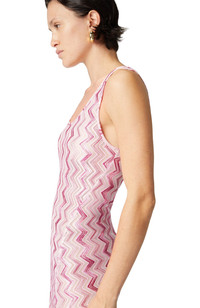Contemporary sleekness and liberated sensuality imbue the Missoni Fall 2024 collection. Offsetting the masculine and the feminine, swinging between the slouchy and the skintight, the collection features pieces that build an ongoing Missoni wardrobe: long and short dresses, skimpy maxi-cardigans and blouson cardigans meant as outerwear; playful faux fur coats and pencil coats with faux fur oversized collars and trims; fluid pantsuits; jumpsuits and tops. Long cover-up dress Viscose Blend Zigzag pattern Ironing maximum temperature 110°C - without steam Dry cleaning in tetrachloroethene Do not tumble dry Do not wash Do not bleach