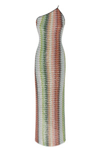 Long one-shoulder dress in gradient zigzag knit with sequins