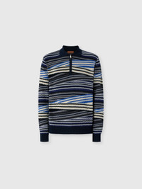 Missoni Long Sleeve Polo With Zip And Striped Zigzag Pattern in Blue at Nordstrom