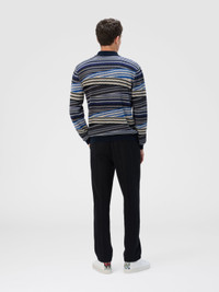 Missoni gets back to the essence, where matter and colour merge. Clothes are the words, but the speeches and stories are of those who wear them. The accent is on outerwear and tailoring: enveloping coats, trench coats, fluid suits, buttonless blazers, loose trousers. Extremes that meet, long tight dresses and liquid ones like caftans, graphic miniskirts and vaporous shirts. A transversal vision, where the sensuality of the body is felt, revealed or barely perceived. Long-sleeve polo with zip Striped zigzag pattern 100% cotton Ironing maximum temperature 110°C - without steam Hand wash Dry cleaning in tetrachloroethene Do not tumble dry Dry flat Do not bleach