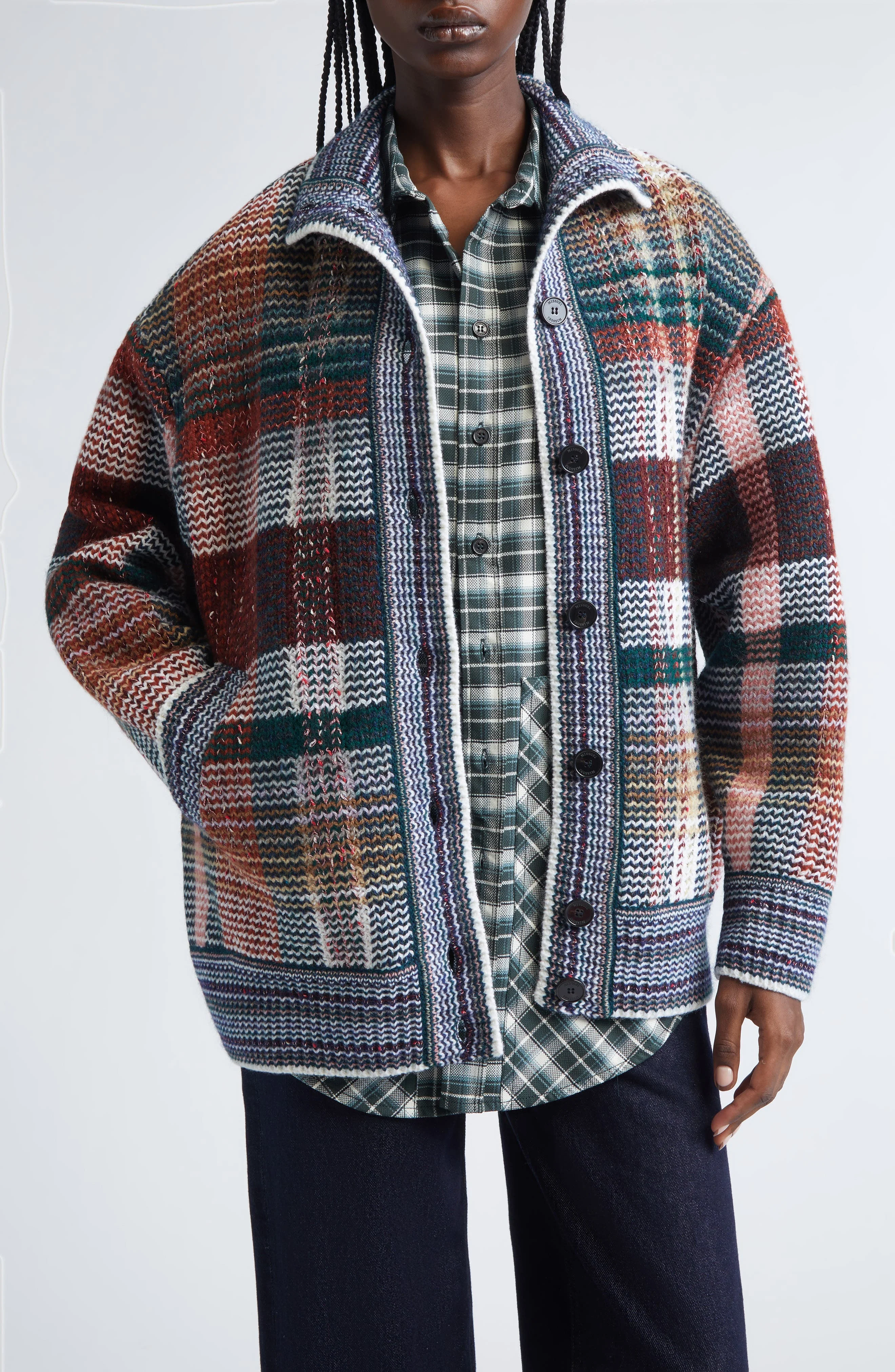 Missoni Oversize Check Wool Blend Cardigan in Green And Red Tones at Nordstrom