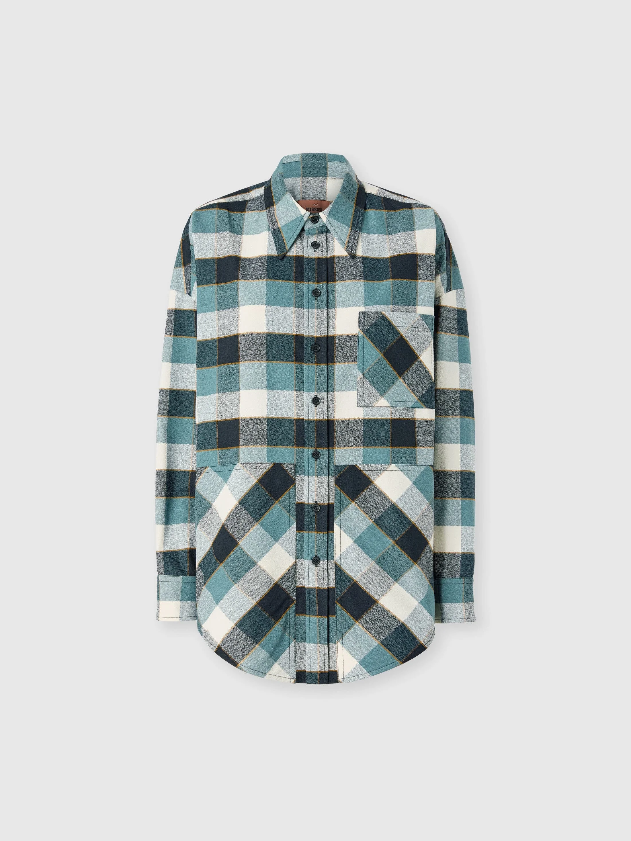 Missoni gets back to the essence, where matter and colour merge. Clothes are the words, but the speeches and stories are of those who wear them. The accent is on outerwear and tailoring: enveloping coats, trench coats, fluid suits, buttonless blazers, loose trousers. Extremes that meet, long tight dresses and liquid ones like caftans, graphic miniskirts and vaporous shirts. A transversal vision, where the sensuality of the body is felt, revealed or barely perceived. Women's overshirt Check pattern in cotton Wash max 30°C - Mild process Ironing maximum temperature 110°C - without steam Do not tumble dry Do not dry clean Do not bleach
