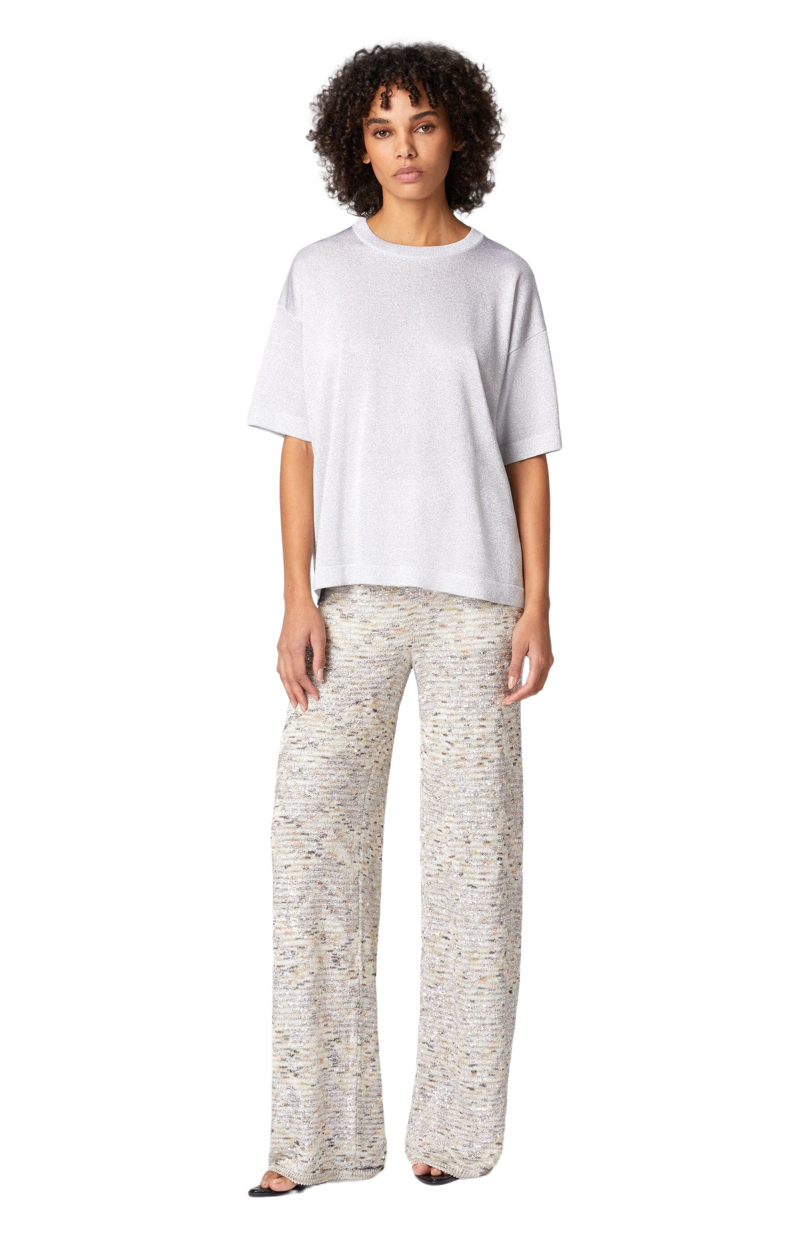 Oversized crewneck sweater in lamé viscose with whetstone sleeves