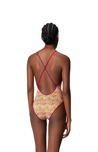 Contemporary sleekness and liberated sensuality imbue the Missoni Fall 2024 collection. Offsetting the masculine and the feminine, swinging between the slouchy and the skintight, the collection features pieces that build an ongoing Missoni wardrobe: long and short dresses, skimpy maxi-cardigans and blouson cardigans meant as outerwear; playful faux fur coats and pencil coats with faux fur oversized collars and trims; fluid pantsuits; jumpsuits and tops. Swimsuit model with print Reversible V-neck Hand wash Do not tumble dry Do not dry clean Do not iron Do not bleach