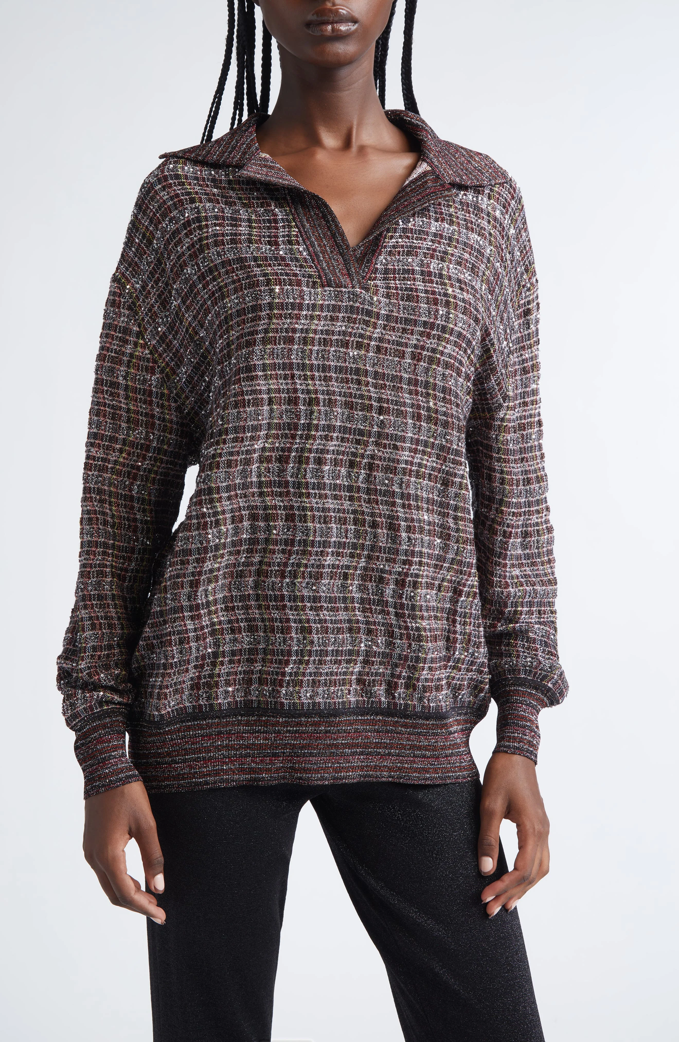 Missoni Sequin Embellished Wool Blend Polo Sweater in Pink And Brown Tones at Nordstrom