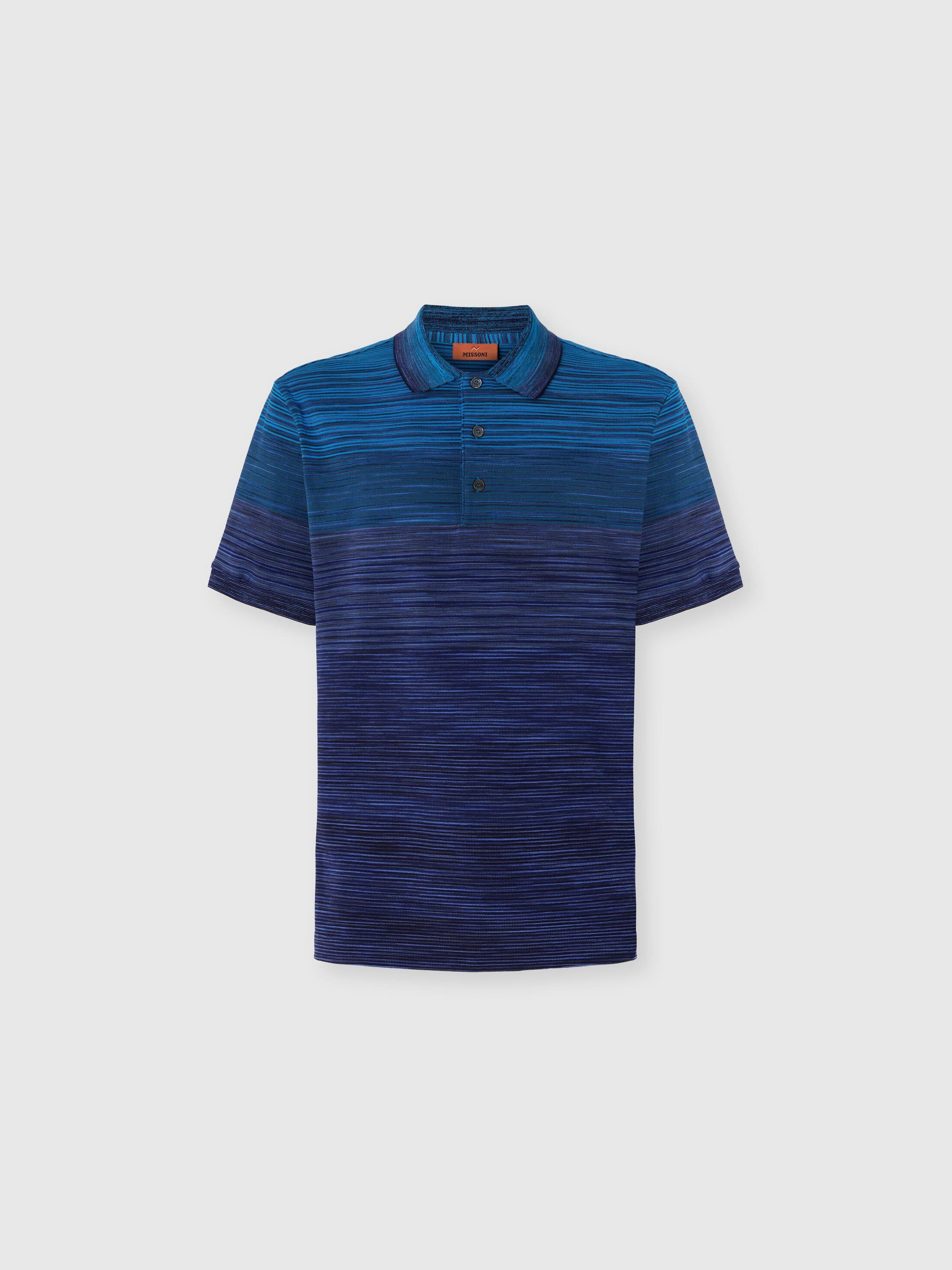 Missoni gets back to the essence, where matter and colour merge. Clothes are the words, but the speeches and stories are of those who wear them. The accent is on outerwear and tailoring: enveloping coats, trench coats, fluid suits, buttonless blazers, loose trousers. Extremes that meet, long tight dresses and liquid ones like caftans, graphic miniskirts and vaporous shirts. A transversal vision, where the sensuality of the body is felt, revealed or barely perceived. Short-sleeve polo regular fit Faded slub pique knit 100% cotton Ironing maximum temperature 110°C - without steam Wash max 30°C - Very mild process Dry cleaning in tetrachloroethene Dry flat Do not tumble dry Do not bleach