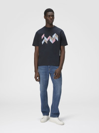 Missoni gets back to the essence, where matter and colour merge. Clothes are the words, but the speeches and stories are of those who wear them. The accent is on outerwear and tailoring: enveloping coats, trench coats, fluid suits, buttonless blazers, loose trousers. Extremes that meet, long tight dresses and liquid ones like caftans, graphic miniskirts and vaporous shirts. A transversal vision, where the sensuality of the body is felt, revealed or barely perceived. T-shirt short sleeve Relaxed fit 100% cotton Slub zigzag insert Embroidered logo Wash max 30°C - Mild process Ironing maximum temperature 110°C - without steam Wash inside out Do not tumble dry Iron inside out Do not dry clean Do not iron decorations Do not bleach