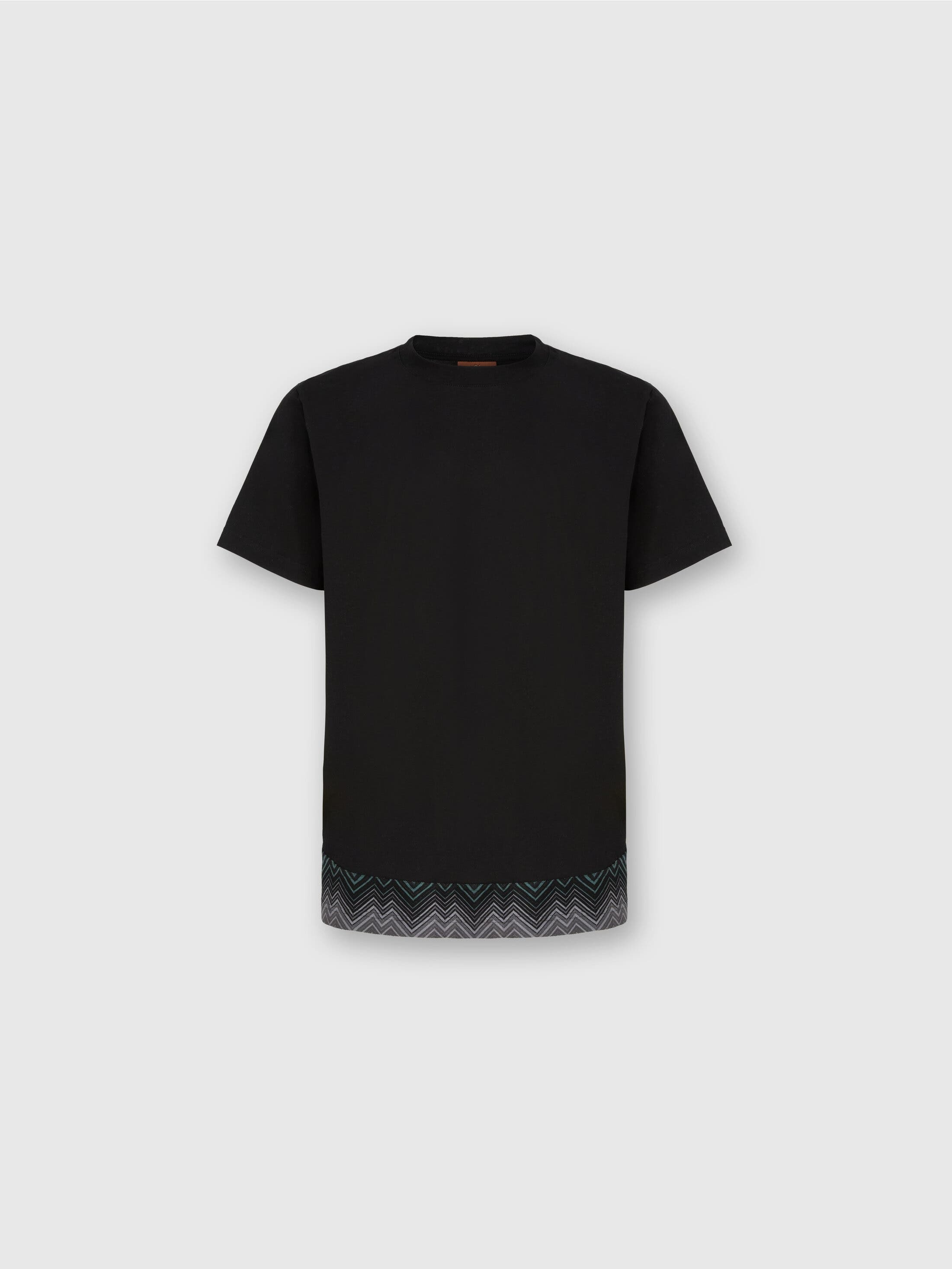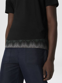 Missoni gets back to the essence, where matter and colour merge. Clothes are the words, but the speeches and stories are of those who wear them. The accent is on outerwear and tailoring: enveloping coats, trench coats, fluid suits, buttonless blazers, loose trousers. Extremes that meet, long tight dresses and liquid ones like caftans, graphic miniskirts and vaporous shirts. A transversal vision, where the sensuality of the body is felt, revealed or barely perceived. T-shirt short sleeve Regular fit 100% cotton Irregular zigzag hem insert Raschel knit Ironing maximum temperature 110°C - without steam Wash max 30°C - Mild process Do not tumble dry Do not dry clean Do not bleach