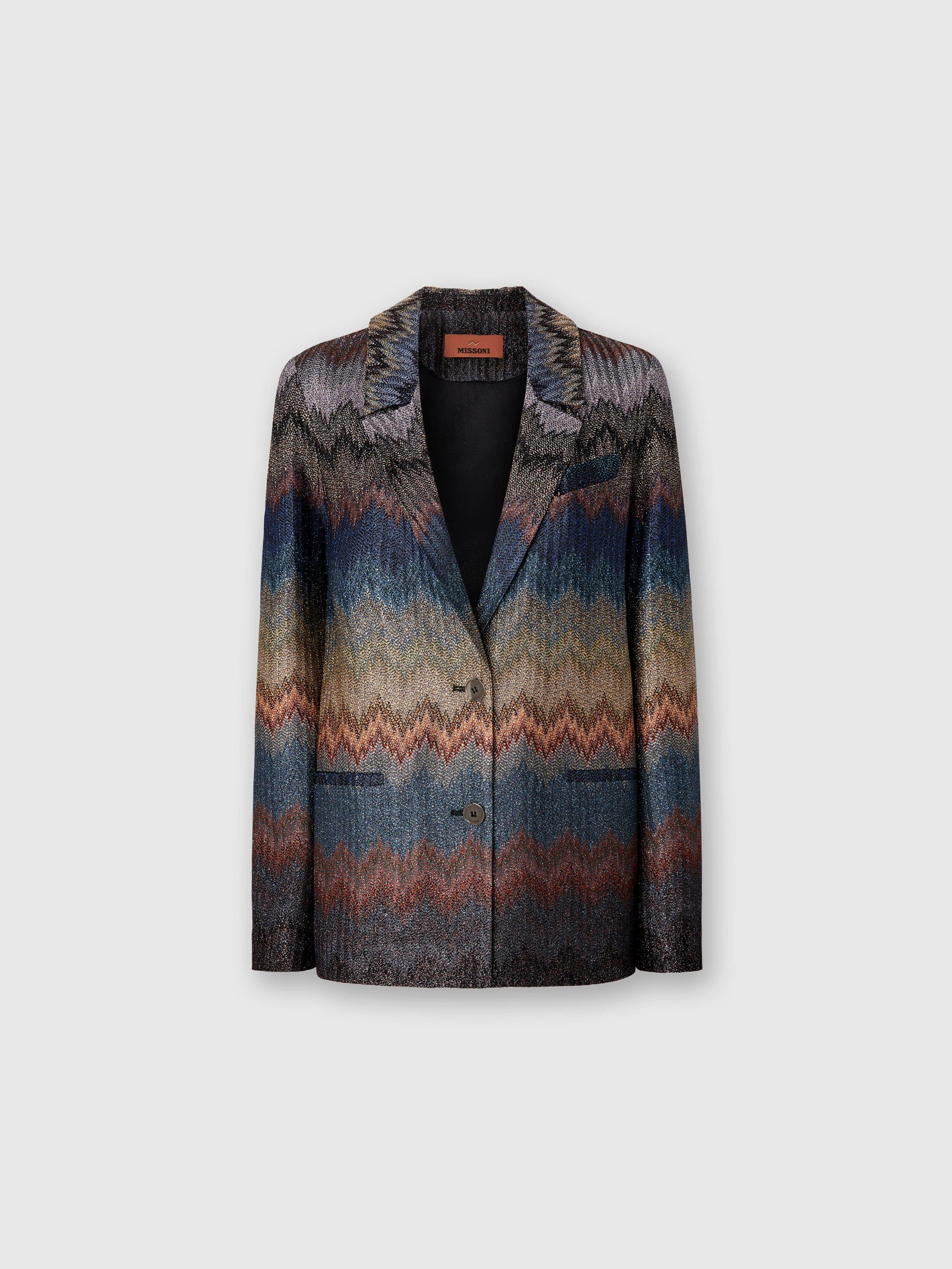 Missoni gets back to the essence, where matter and colour merge. Clothes are the words, but the speeches and stories are of those who wear them. The accent is on outerwear and tailoring: enveloping coats, trench coats, fluid suits, buttonless blazers, loose trousers. Extremes that meet, long tight dresses and liquid ones like caftans, graphic miniskirts and vaporous shirts. A transversal vision, where the sensuality of the body is felt, revealed or barely perceived. Single-breasted blazer Raschel knit Snake motif Lurex threads Viscose blend Dry cleaning in tetrachloroethene - mild process Wash max 30°C Do not tumble dry Steam iron only Dry flat Do not iron Do not bleach
