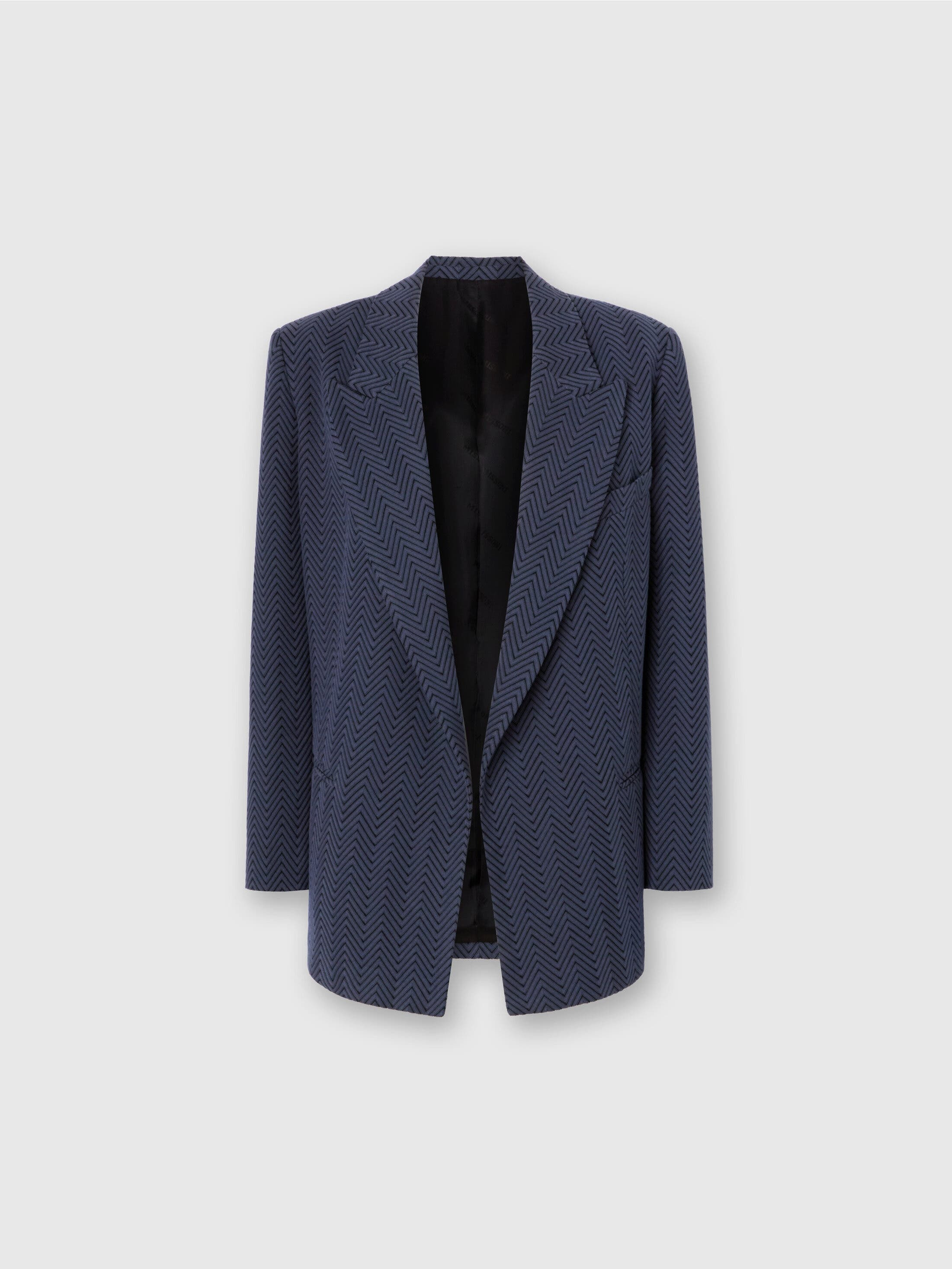 Missoni gets back to the essence, where matter and colour merge. Clothes are the words, but the speeches and stories are of those who wear them. The accent is on outerwear and tailoring: enveloping coats, trench coats, fluid suits, buttonless blazers, loose trousers. Extremes that meet, long tight dresses and liquid ones like caftans, graphic miniskirts and vaporous shirts. A transversal vision, where the sensuality of the body is felt, revealed or barely perceived. Single-breasted blazer Raschel knit Zig zag motif Cotton blend Deep V-neckline Ironing maximum temperature 110°C - without steam Dry cleaning in tetrachloroethene - mild process Do not tumble dry Dry flat Do not wash Do not bleach