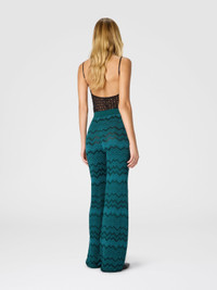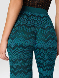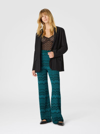 Missoni gets back to the essence, where matter and colour merge. Clothes are the words, but the speeches and stories are of those who wear them. The accent is on outerwear and tailoring: enveloping coats, trench coats, fluid suits, buttonless blazers, loose trousers. Extremes that meet, long tight dresses and liquid ones like caftans, graphic miniskirts and vaporous shirts. A transversal vision, where the sensuality of the body is felt, revealed or barely perceived. Straight-leg long pants Reinterpreted chevron pattern Wool and viscose blend Ironing maximum temperature 110°C - without steam Dry cleaning in tetrachloroethene - mild process Do not tumble dry Dry flat Iron inside out Do not wash Do not bleach